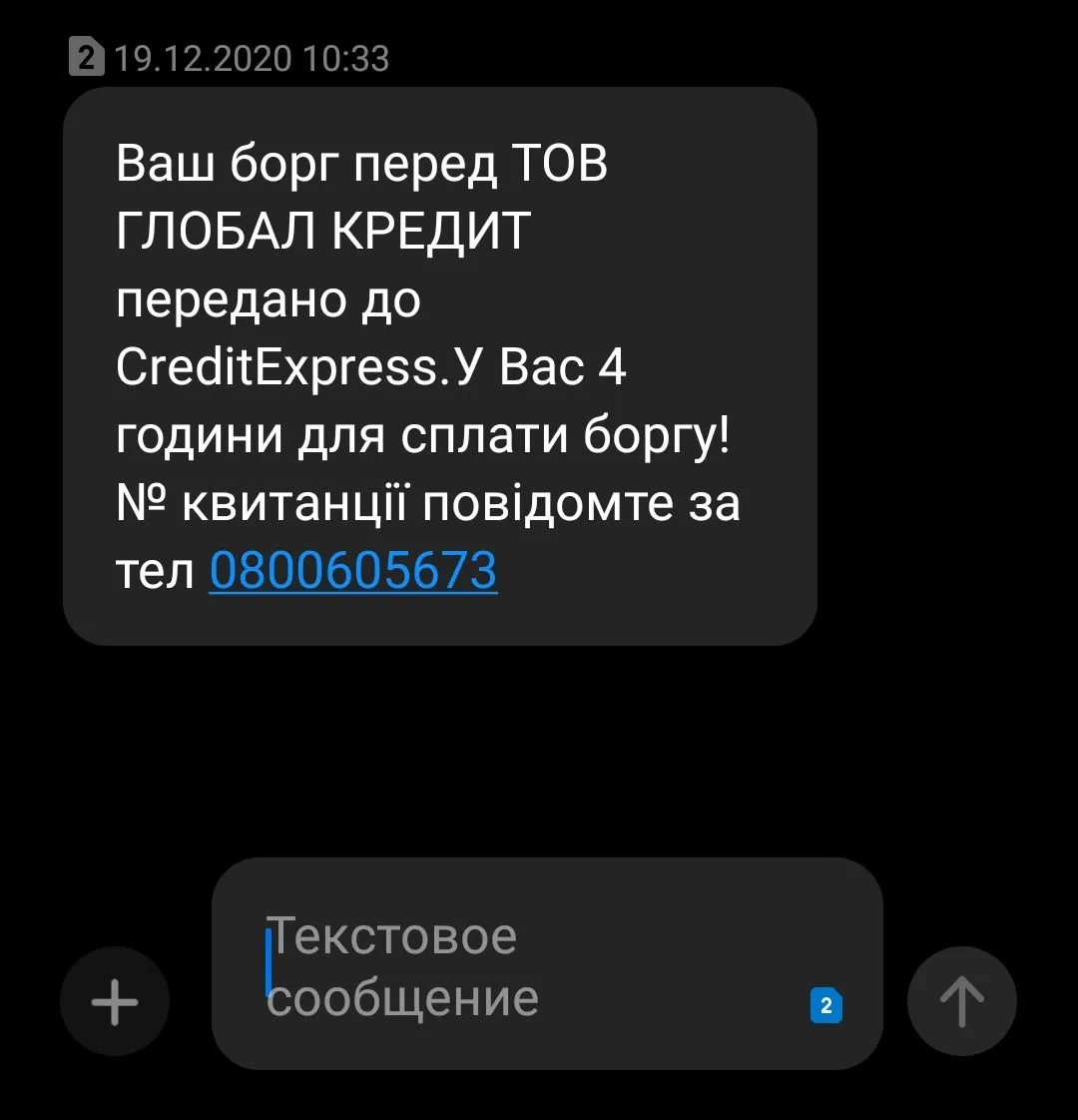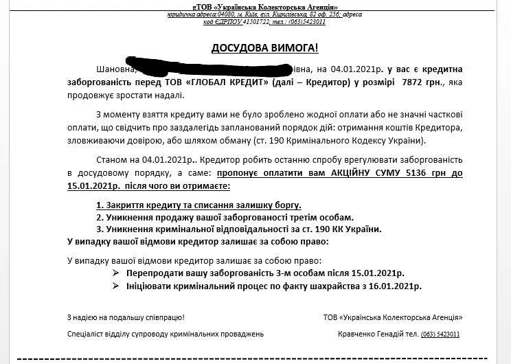 « досудова вимога» от Global Credit в вайбаре...