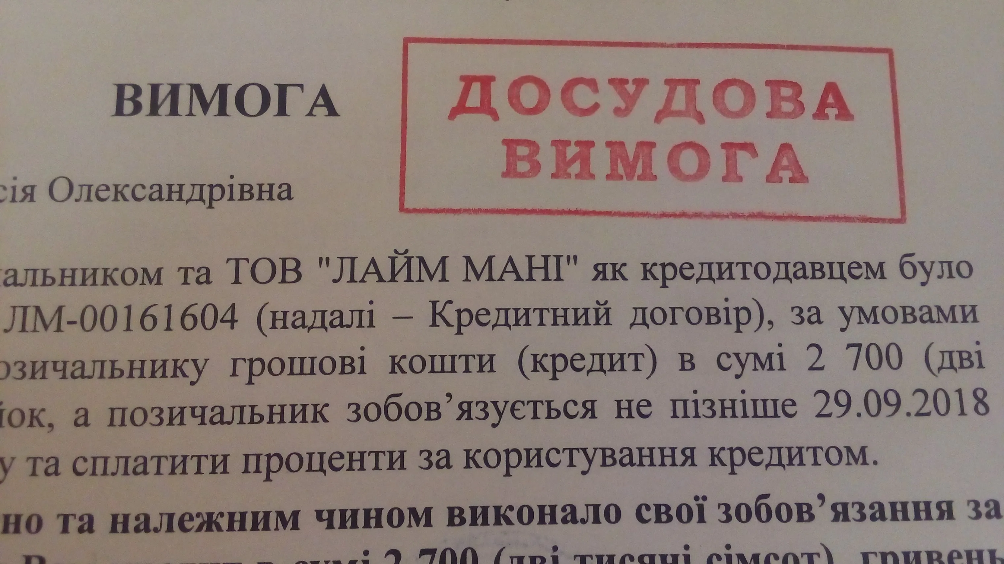 Бумажки: 2 штуки, по одной на каждый займ, затирать данные не буду, просто не буду их фоткать, думаю, такие же бумажки получали все, у кого там просрочки. Красная печатка "Досудова вимога". Печати в конце мокрые, на фото видно как проверяла)) Только подписей нигде нет.