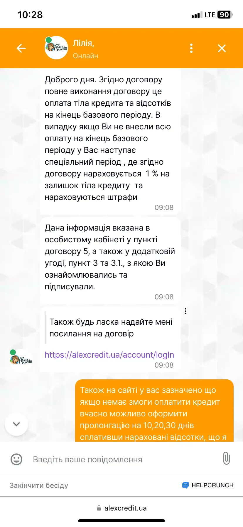 Ну от навіть повідомлення яке мені на пошту надійшло, щось я не бачу жодної згадки що договір вже порушений. Вибачте звісно що нию за все це але мій шок в шоціТа це взагалі якась фігня нездорова. Якщо була можливість пролонгації і Ви її зробили, то про яке порушення йде мова?