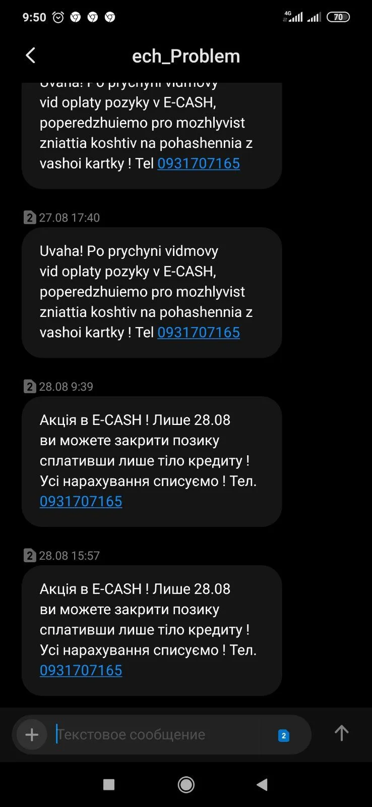 Всім привіт. Хочу поділитися вчорашньою історією. Був кредит у мого чоловіка в Є-кеш 3000, жодної пролонгації. 2 тижні прострочки. Ще до прострочки чоловік видалив фб, інсту, перевів вайбер на інший номер. Ми ще дурні просили реструктуризацію, писали їм на електронну пару листів. Вони відповіли, що реструктуризація у них не передбачена. З 1 дня почалися дзвінки та смс йому, мені і свекрусі. Ми з чоловіком на труколері, повний ігнор, ні разу ні з ким не розмовляли. А от свекруха піднімала трубку, правда вони її питали чи вона "жена"?. Ну я і свекрусі виписала, що то аферисти, щоб всіх посилала і трубку не брала. В ітозі 28 числа прийшло смс, що акція і можна закрити за тіло. Я отписала, що без гарантійки нічого оплачувати не будем. 29 числа пише на телеграм дівчина, що то акція і якщо ми оплатимо тіло, то все спишеться. Ми довго сумнівалися, але на форумі прочитала, що були люди, яким так закрили. За що їм велике дякую. Вобщем оплатили 3000, лягли спати, вранці встаємо, в кабінеті дійсно все списано і запропоновано новий. Я зразу ж написала в телеграмі, щоб вислали довідку про відсутність заборгованості і подала запит про видалення кабінету. Хоч чоловіку буде спокій, бо у випадку мого кредиту, то у мене вже почалися погрози в смс і фото паспорта в вайбер(((