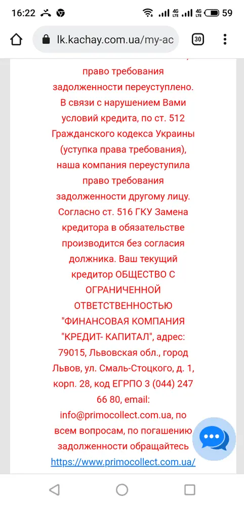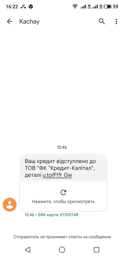 Сегодня мне прилетело смс о том, что мой кредит отступили ТОВ ФК "Кредит-Капитам"