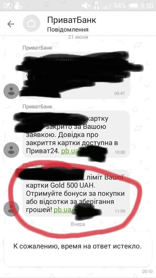Ребята, кто знает что это значит? Один счет закрыла в пятницу, справку скачала. По второй карте - перевыпустила, но пришло сообщение от привата про какой-то лимит по карте 500 грн. Проверила, кредитного лимита по карте нет. Это они мне предлагают сделать этот самый лимит?