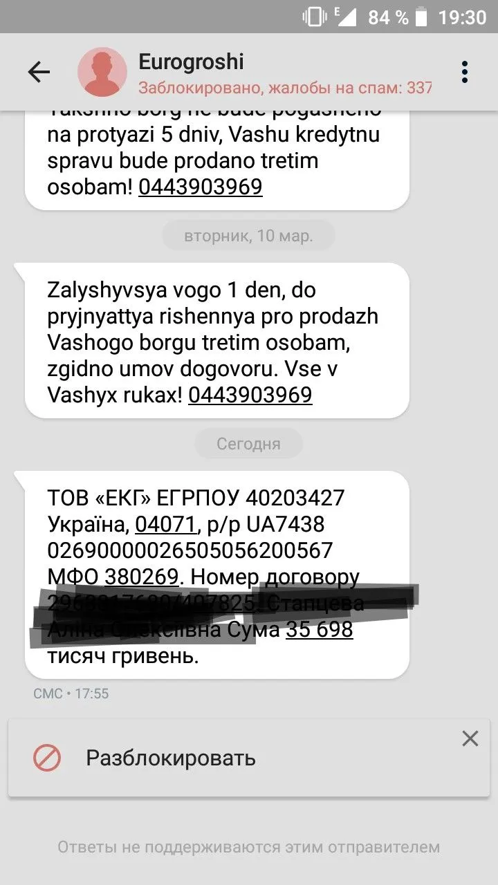 Саму це найбільше лякає,але думки приводять знову ж таки до Приватбанку,бо поповнювала новий номер через Приват 24, або колишній чоловік постарався(бо знаю,що МФО його задовбують за мене)