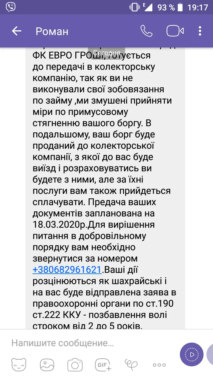 После угроз, написала заявление в полицию (они пока молчат) и сменила номер. Сегодня,позвонил какой-то хмырь на новый номер ,начал грузить,я говорю:Вы номером ошиблись,а он: ты мне не рассказывай,ты когда займ в Евро грошах брала,недостоверные данные указала,ты что думала,мы тебя не найдем. Мы хотели по нормальному,теперь жди...