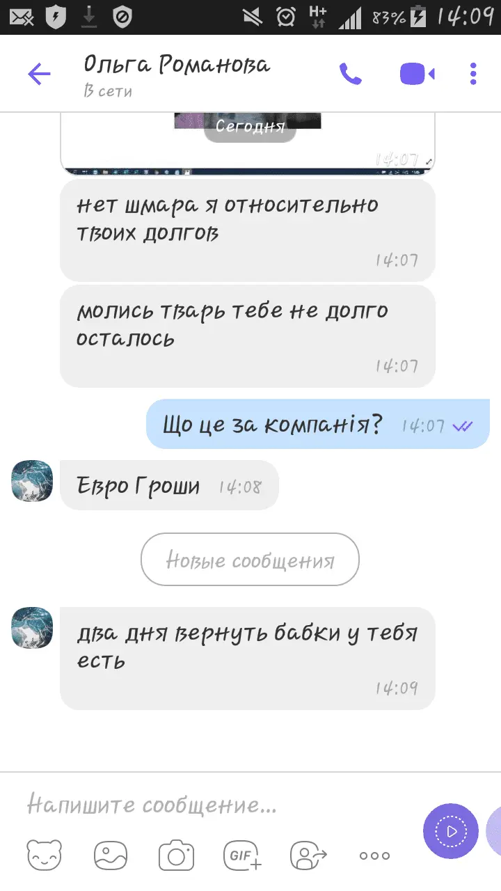 Сьогодні на Вайбер написала оця ***** з погрозами тадзвінками від компанії Євгроші.