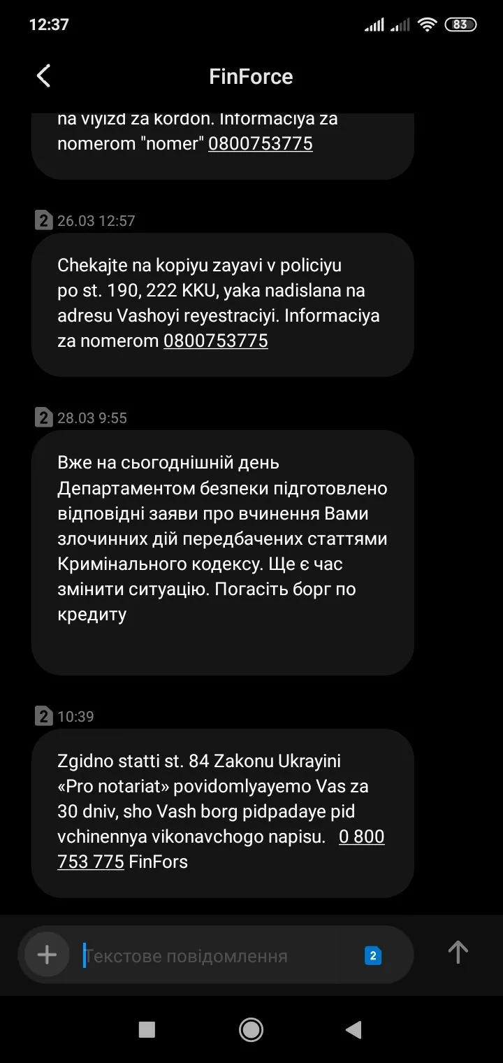 Финфорс присылает сообщения с угрозами исполнительной надписью нотариуса, взысканием. Насколько законно все то, что они присылают и законна ли исполнительная надпись нотариуса как таковая? Что делать мне в этом случае, как себя вести?
