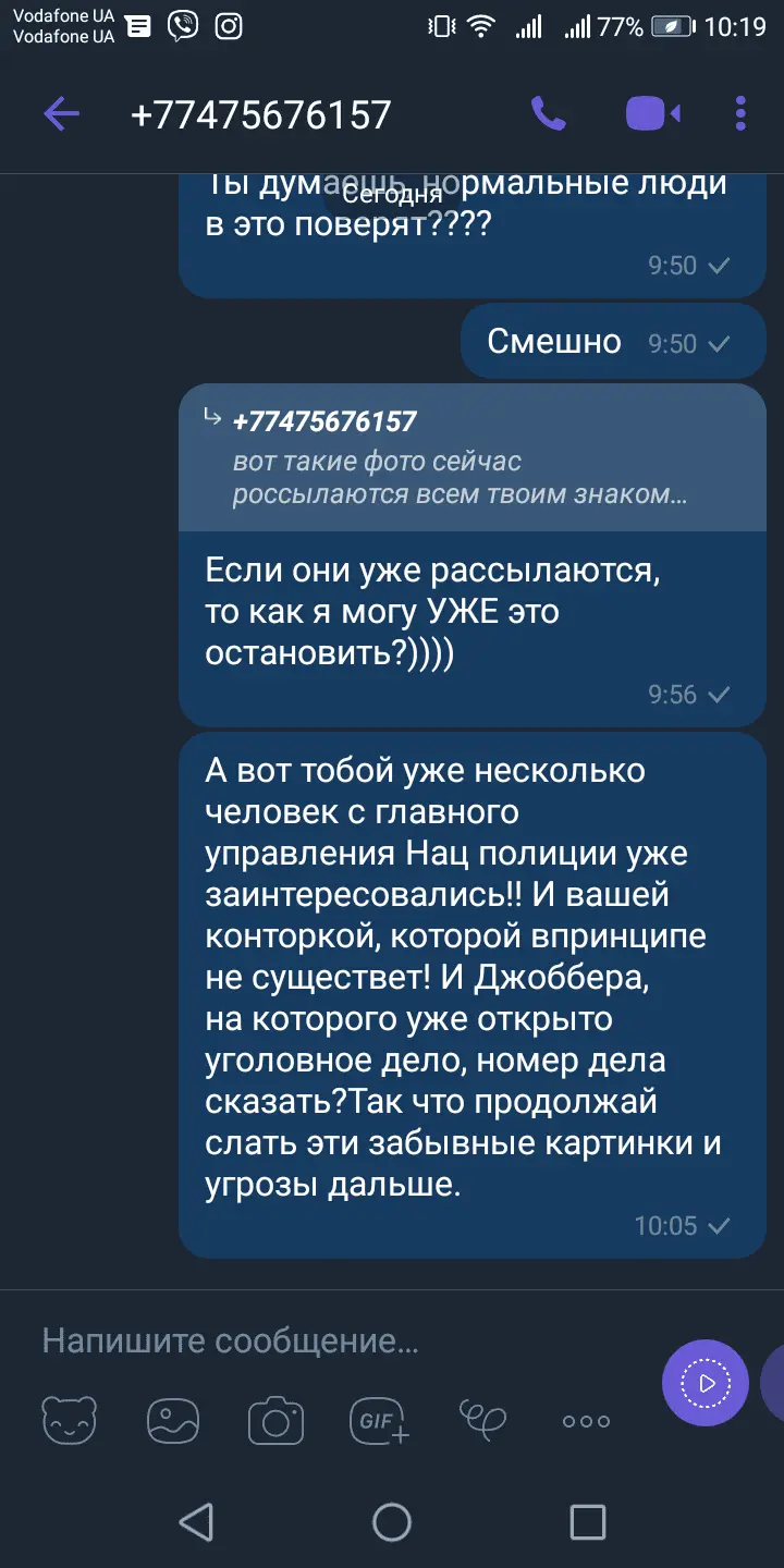 Ребята, подскажите. Просрочка больше месяца, правда до этого пролонгациями все уже оплатила, так вот сегодня пишет в вайбере какой то Ахмат...с ФК Морг... Что они дали аванс за мой кредит 2500 и я должна немедленно с ними рассчитаться. Сумма около 7000, до 15.00. При этом скинули данные родственников.. Половины правда уже нет в живых... Когда сказала им предоставить документы, чтоб юрист ознакомился, начался отборный мат... Сказал этот Ахмат или хз как его, что им по... юристы, адвокаты, прокуратура и тд