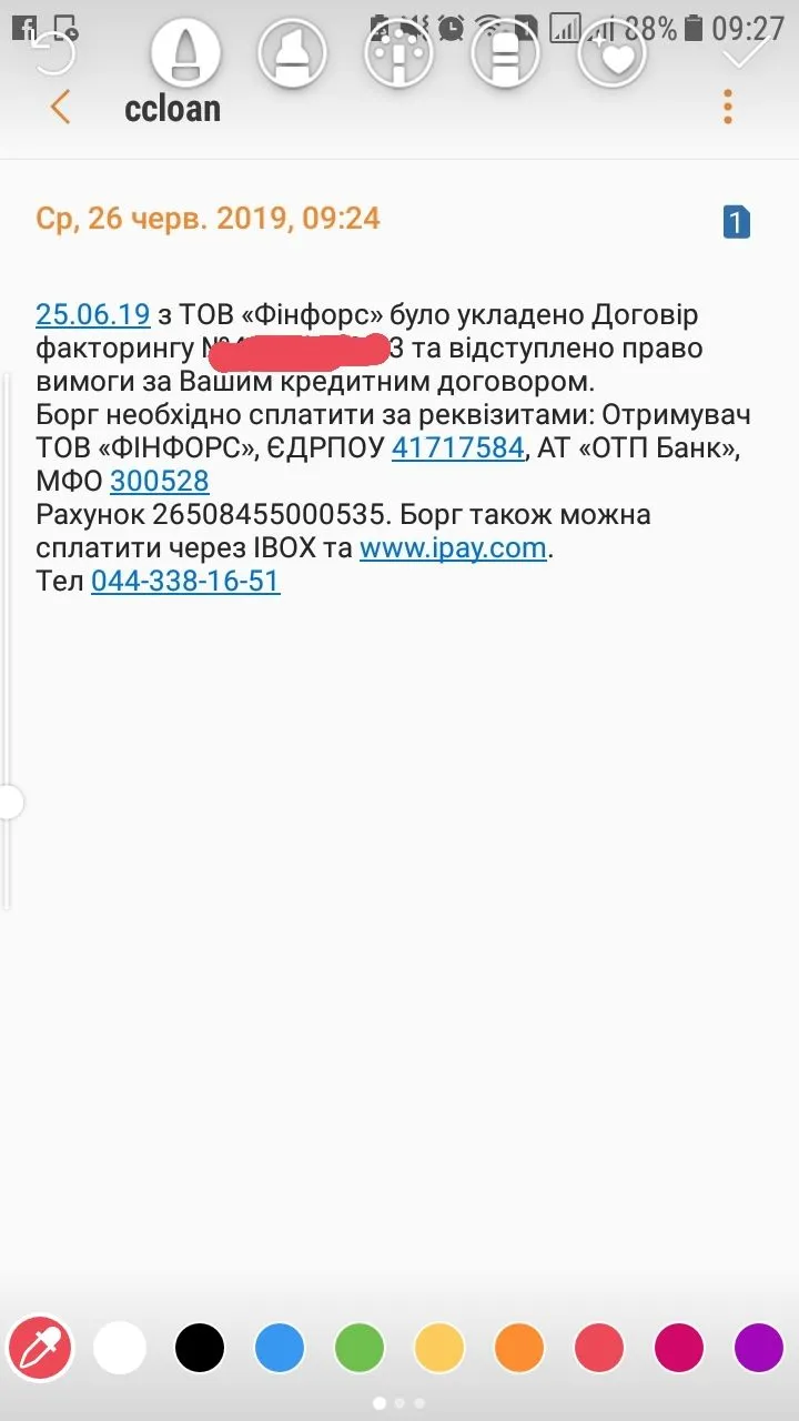 25.06.19 з ТОВ «Фінфорс» було укладено Договір факторингу №40071779-13У кого еще продали? Меня очень интересует номер договора факторинга