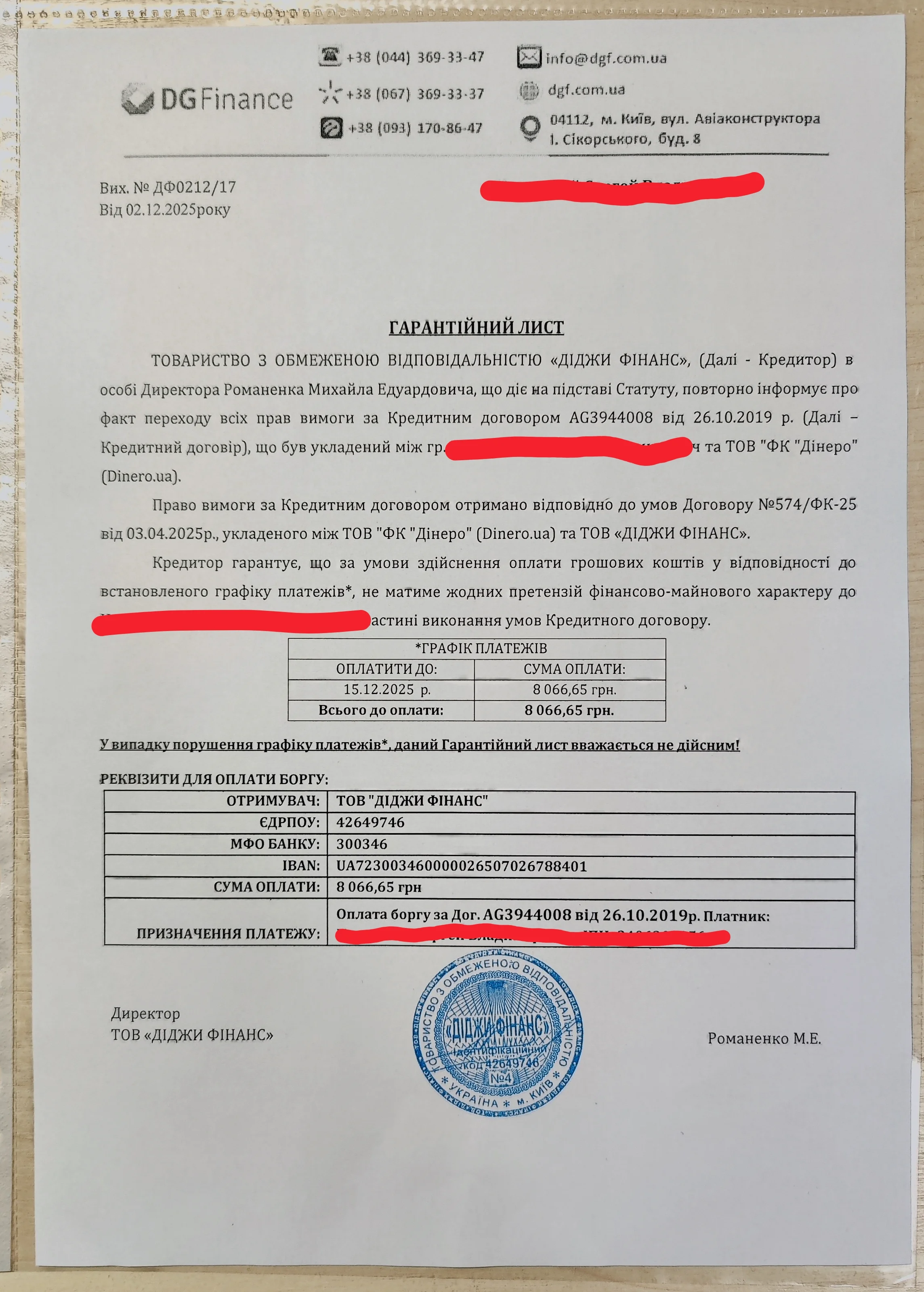 Сейчас за меня взялись коллекторы, а именно DG Finance. Долг передан с Dinero, который брался в 2019.