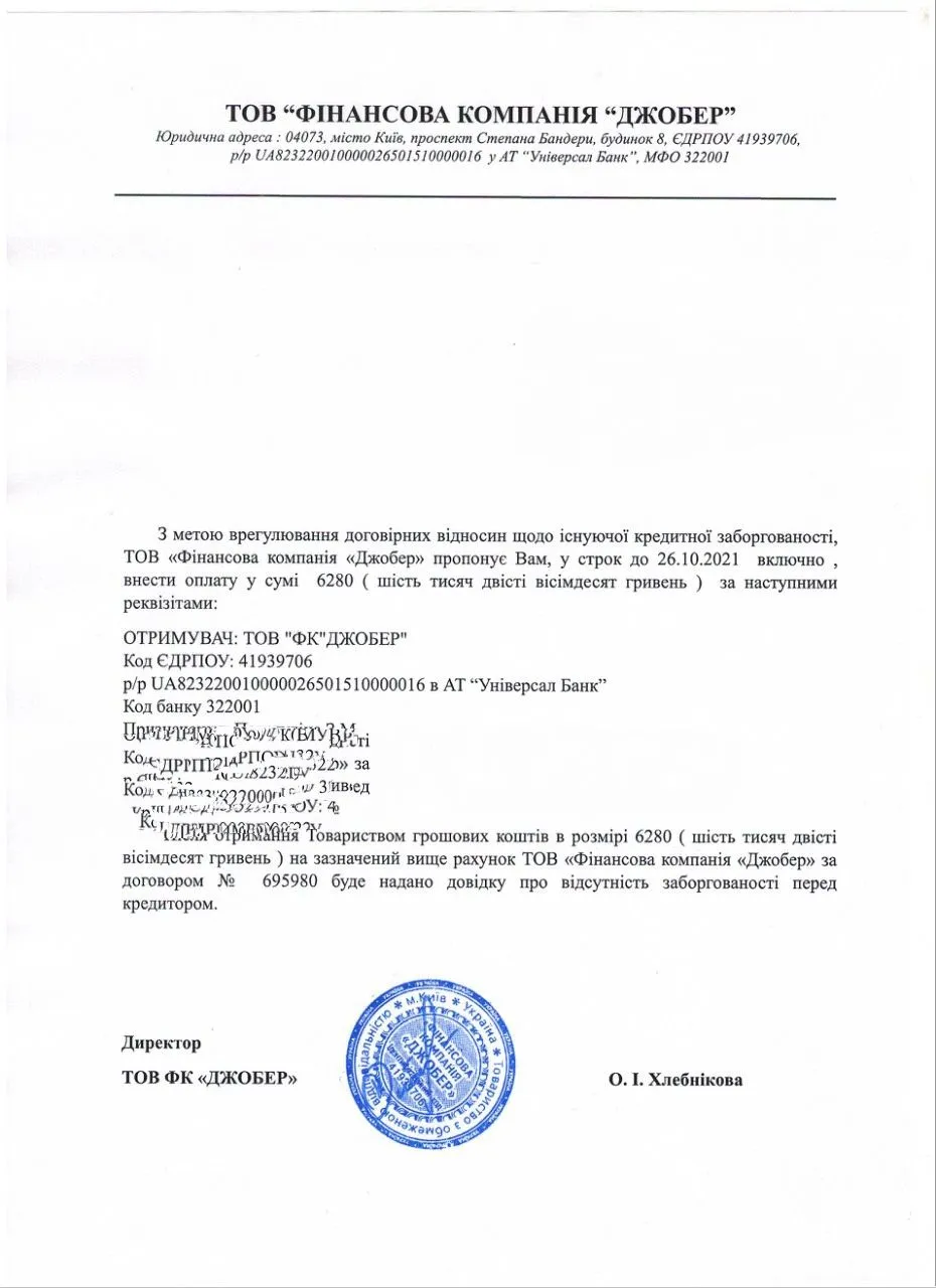 50 на 50. всё хорошо, но отсутствует заголовок "Гарантійний лист", а также "договір № ... буде закрито"