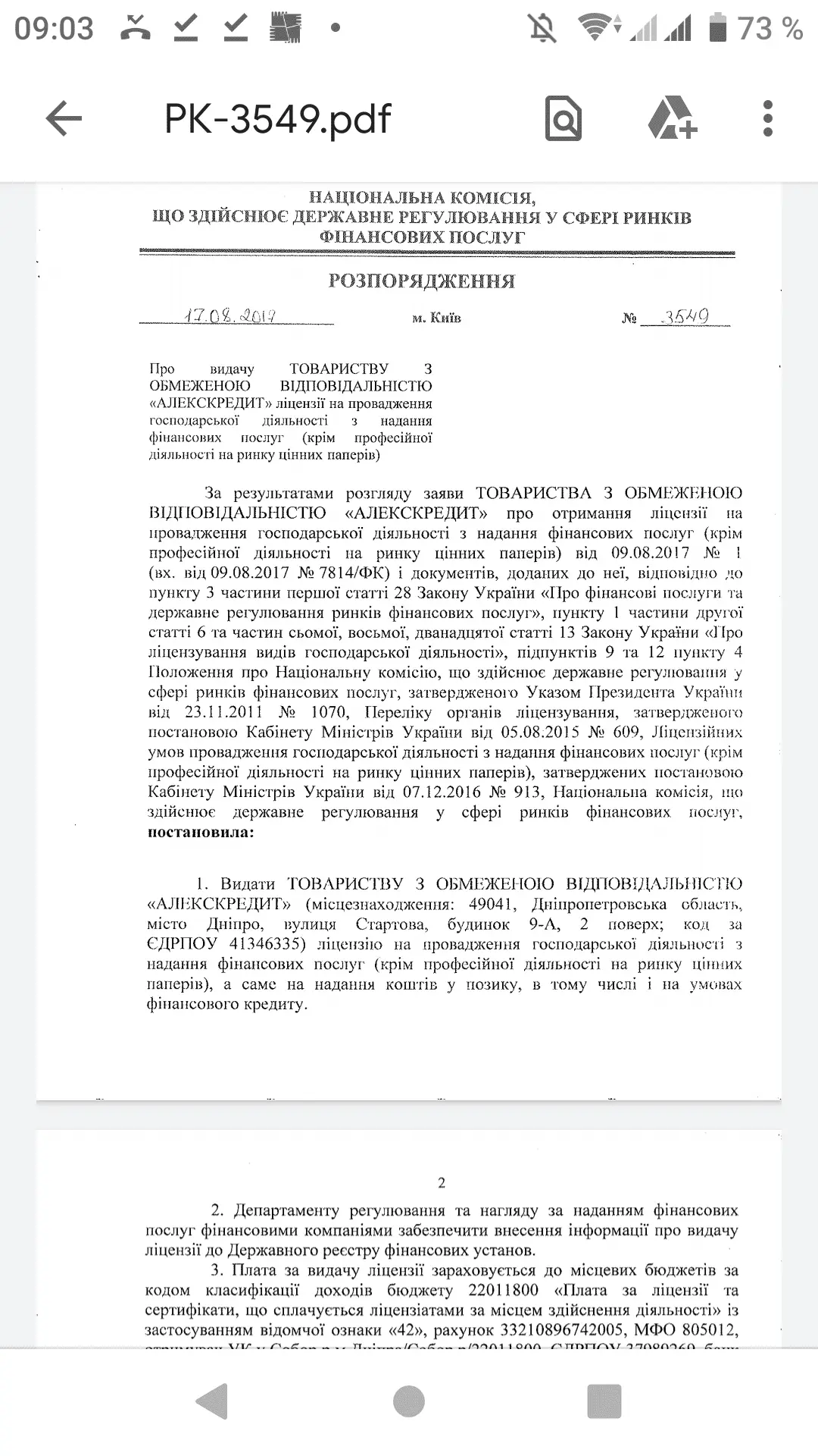 зважаючи на це, Нацкомфінпослуг законодавством про фінансові послуги не