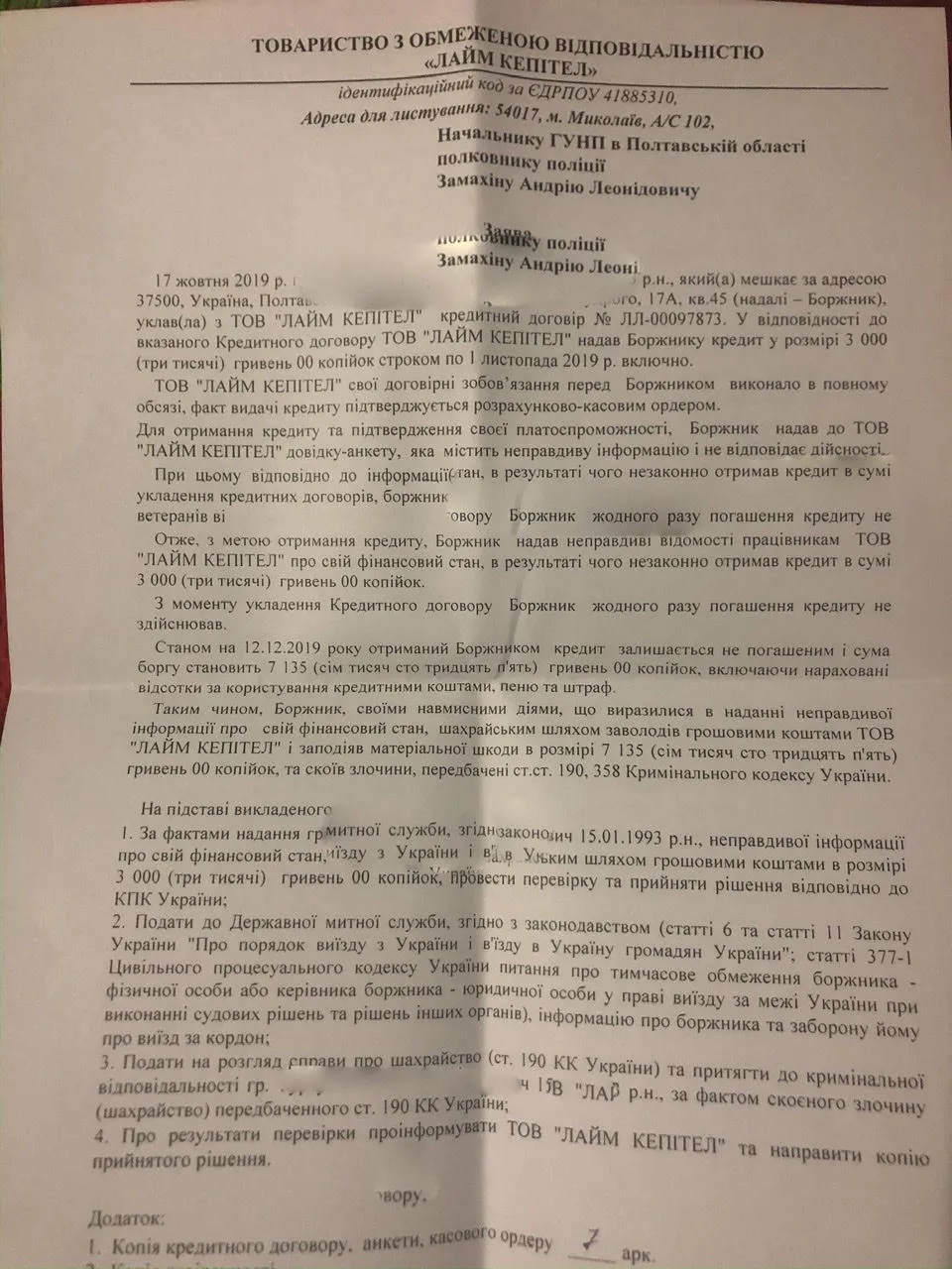 А крім того ще звичайним листом кинули начеб то позовну заяву і заяву до поліції. Я так розумію цим можна розпалювати вогнище?))