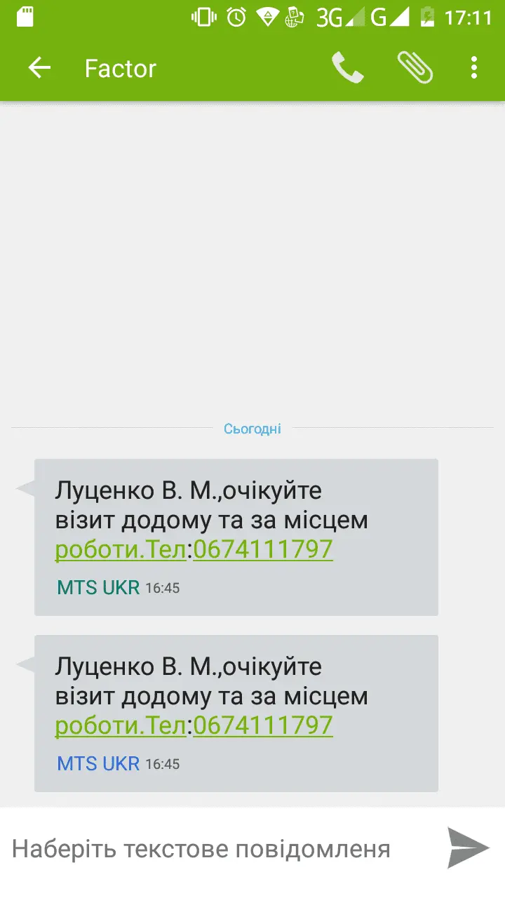 Мені сьогодні Фактор теж прислав повідомлення. Типу Очікуйте візит на роботу і додому, але не я а мій тато. Хоча він ніде не працює. Цікаво Screenshot_20191018-174030.webp