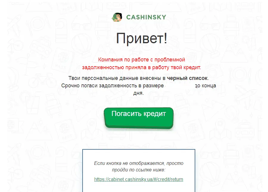 есть классный способ с ними договориться) рассказываю) вообщем ждёте 3 года) потом гуглите картинку ж..пы и отправляйте в кашинский) всё) через 3 года они максимум что получат) а если серьёзно невероятно упёртые ослы) договорится почти не реально) интересно о чем думает их начальство с таким количеством невозвратов)