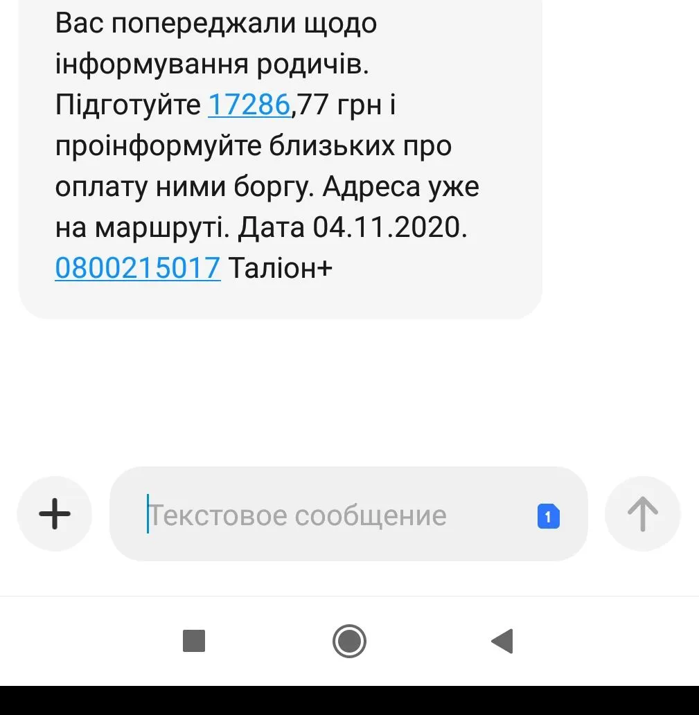Ув...ФИО , для зв'язку щодо можливого опису і реалізації Вашого майна в рахунок погашення боргу, відповідно до ЗУ "Про виконавче провадження", звертайтесь терміново на безкоштовну гарячу лінію 0800215017