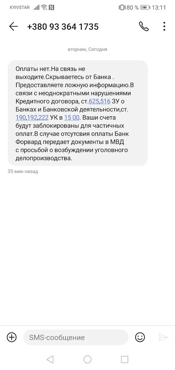 А причем тут сообщение от Форвард банка? Хотя банки действуют как и звонилки МФО зачастую.