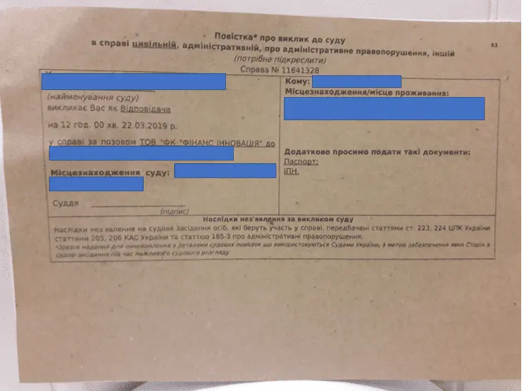 вчора прийшов про виклик в суд від "ФІНАНС ІННОВАЦІЯ"