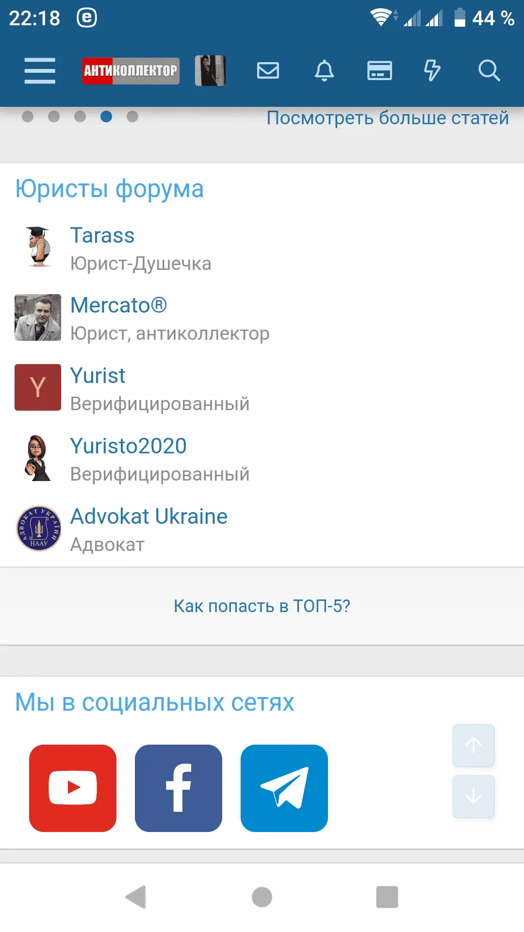 На главной странице форума есть список юристов, в их профилях и в подписях под