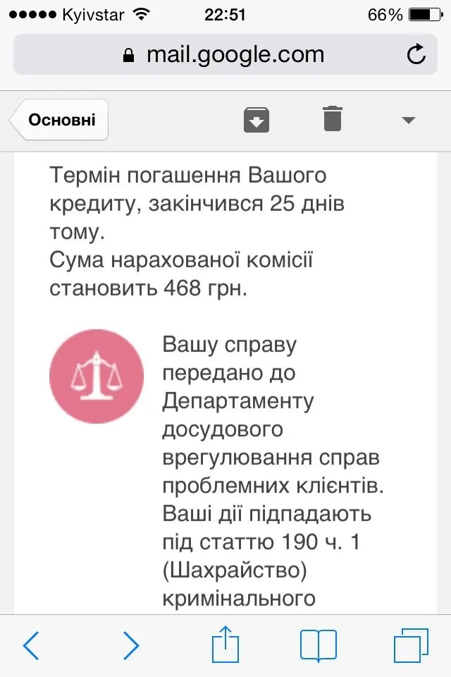 Где то под 20к баблоса насчитали и продали факторам.Почти полгода в просрочке.Ни судо ни "досудов".А таких смс ещё получать будете вагон и маленькую тележку.Яка ймовірність шо вони продадуть до суду і як часто вони це роблять?