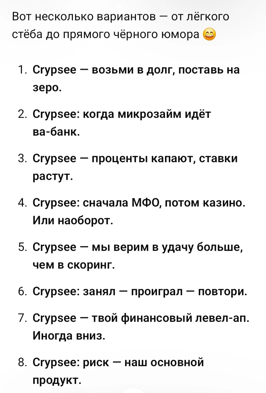 Короче, ржака. Crypsee добавили себе казино на сайт. Чтоб не нужно было метаться по разным сайтам, и чтоб всё необходимое было под рукой. И займы под инвестиции. И сам инструмент для обогощения. Такие они заботливые.