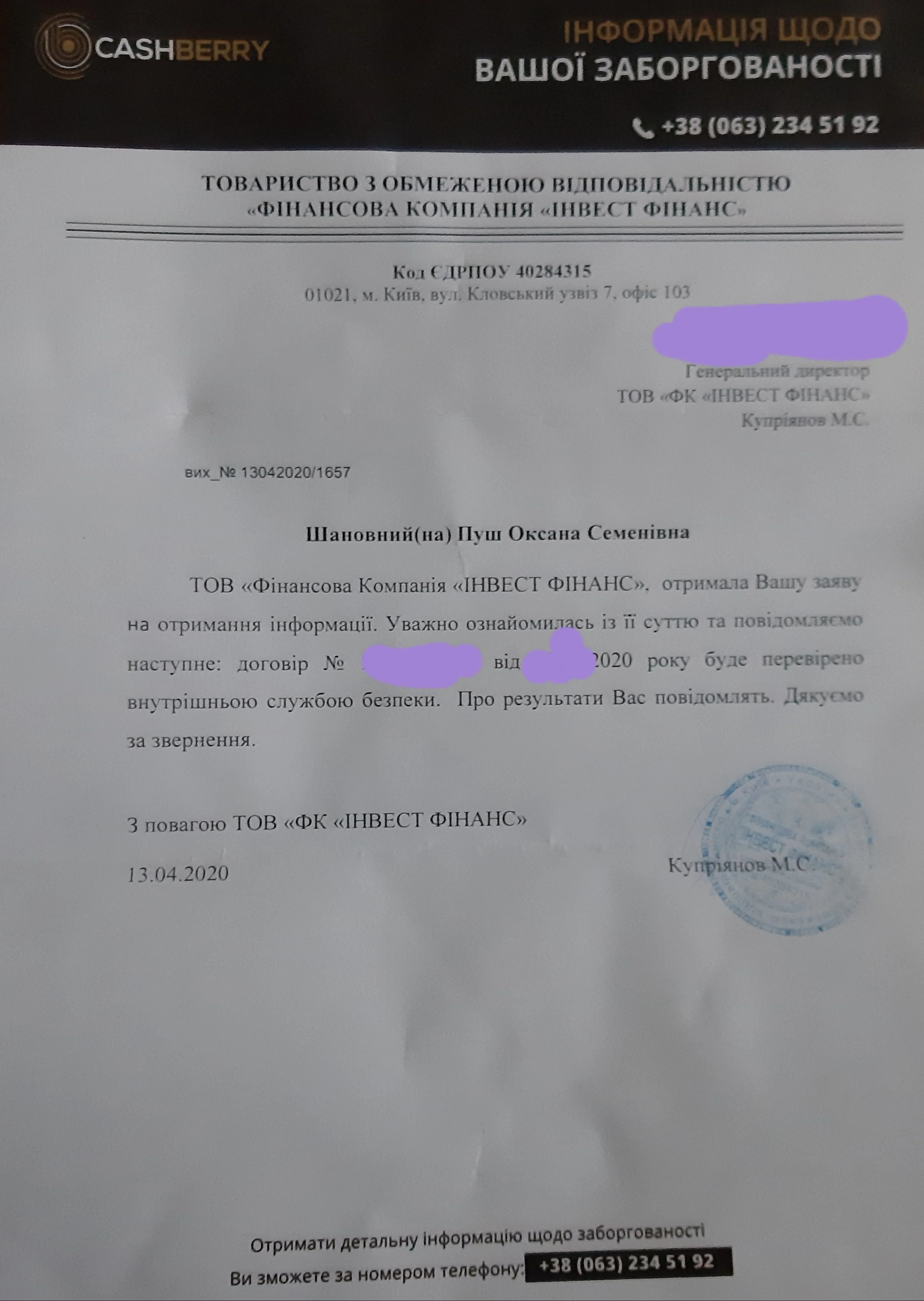 На мені висить позика (яку я не оформлювала, але то інше питання), уже майже 2 місяці просрочка. Кешбері реально таке роблять?
