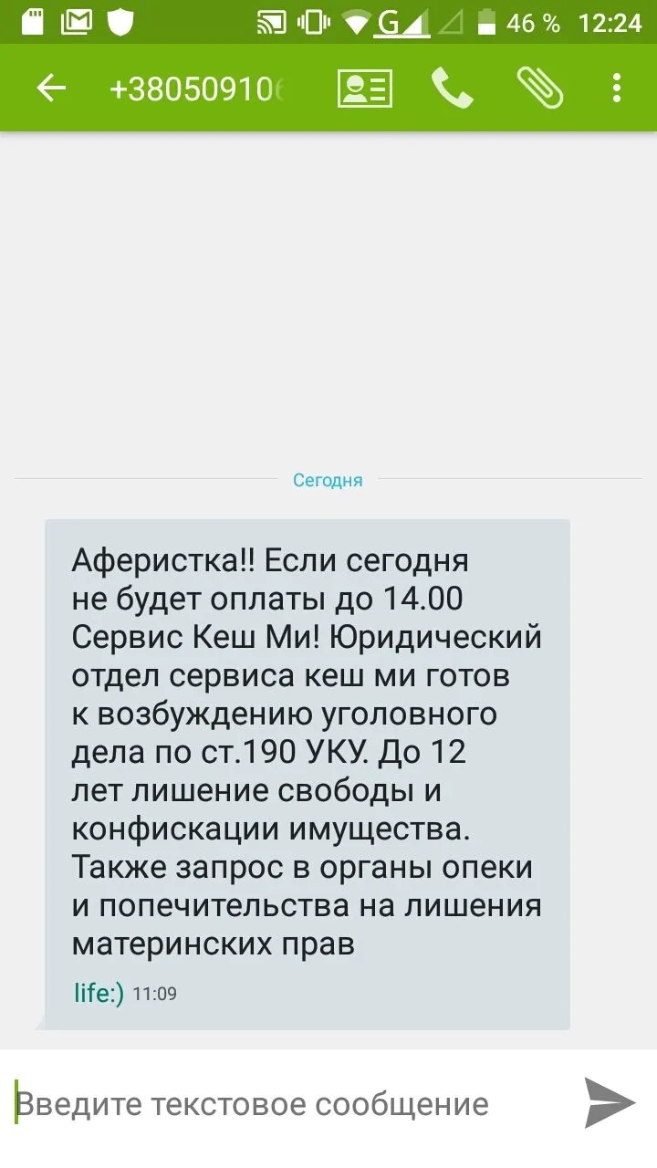 Кеш ми это мягко говоря уpoды которые отмотали по три срока. Меня грозились лишить материнских прав, уврлить с работы и что мое место на панели, что пpocтитутка, нищебродка и т.п. Последней каплей было когда позвонили на работу мне и моих коллег обозвали шалавами. А сестре на работу начальнице и тоже по полной с матами. Сестра со мной не общается уже месяц. Что делать дальше не знаю подходит время платить, а денег нет. Как быть?