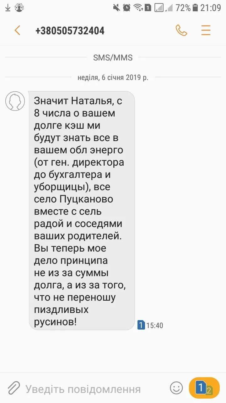 Пыталась договориться в телефоном режиме, но бес толку. Орет как резаная одними матами. Таких и не слышала еще.