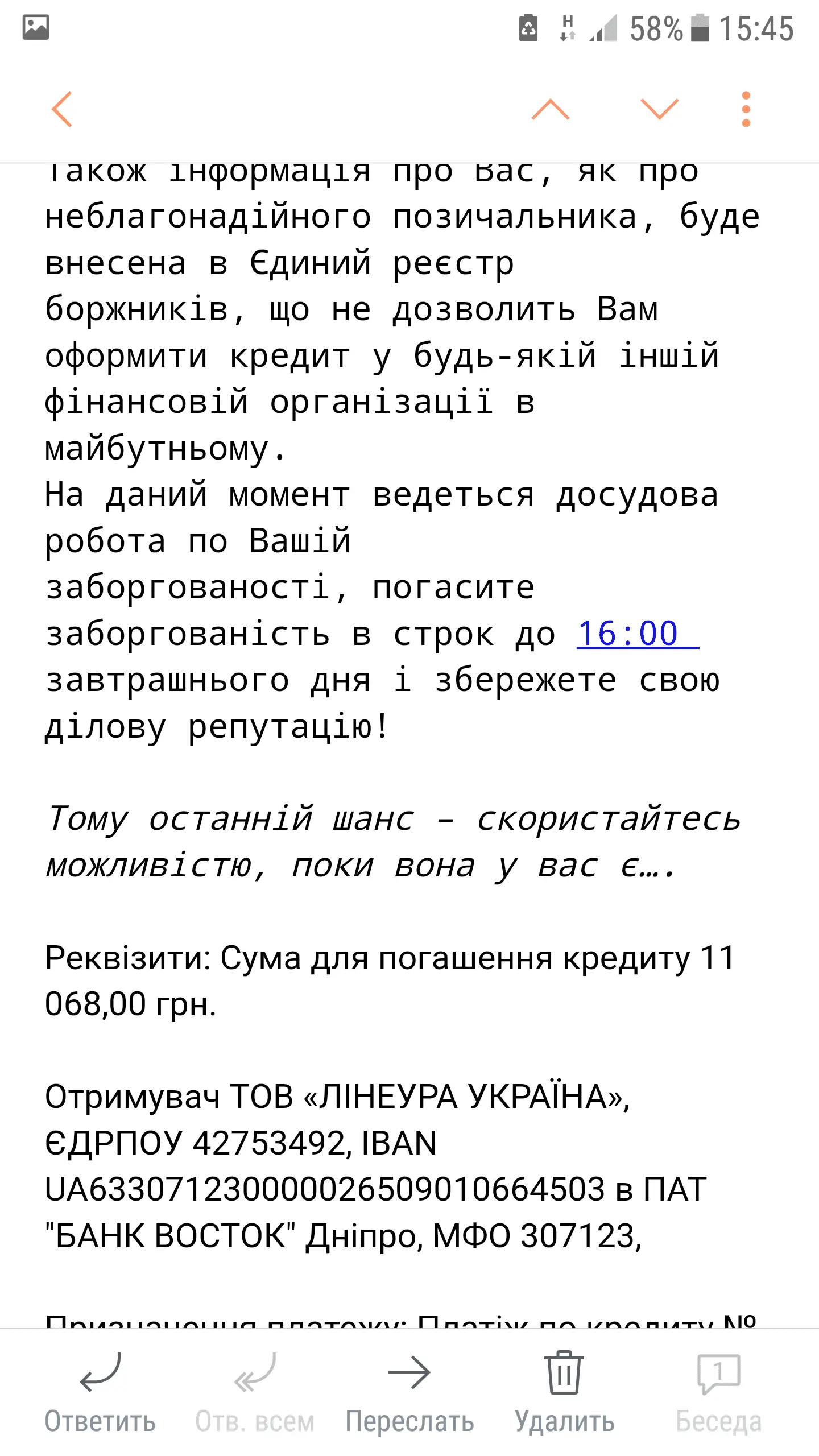 Прилетело очередное письмо от кредит 7, которое абсолютно не радует.Меня уже начитает тилипать как той с... ой. Кому такое приходило? Чего дальше ждать?