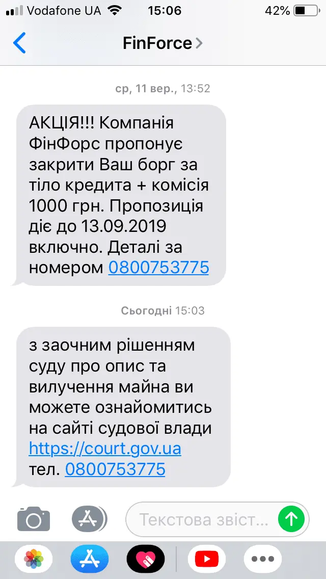 Колекторська компанія Фінфорс подає до суду?