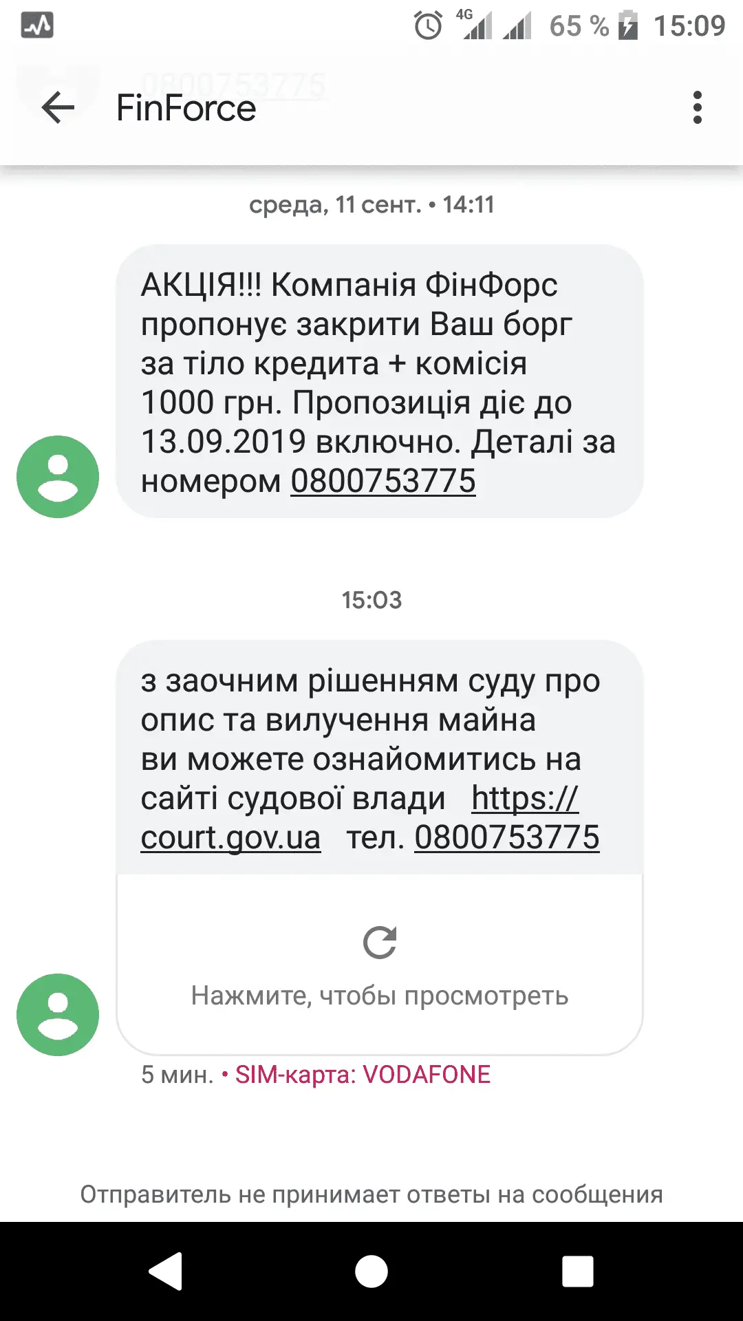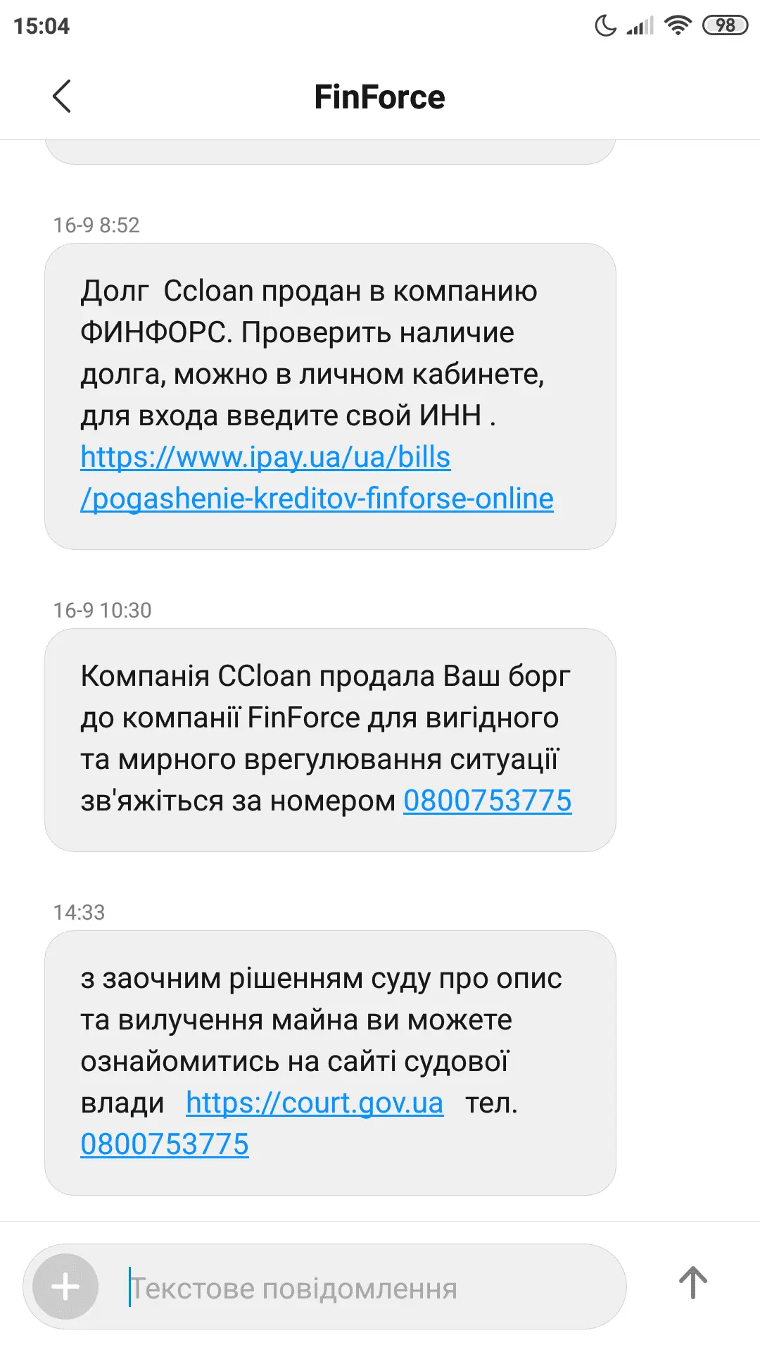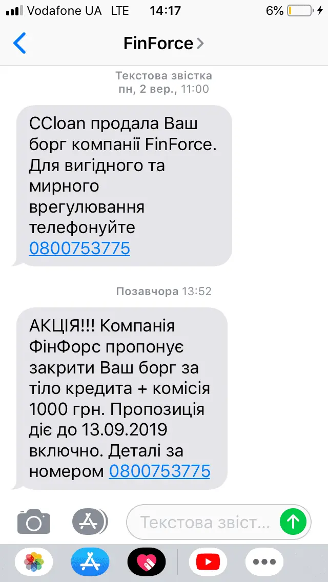Коли було 7-8 місяців просрочки, то прийшла смс, що продали ФінФорсу.