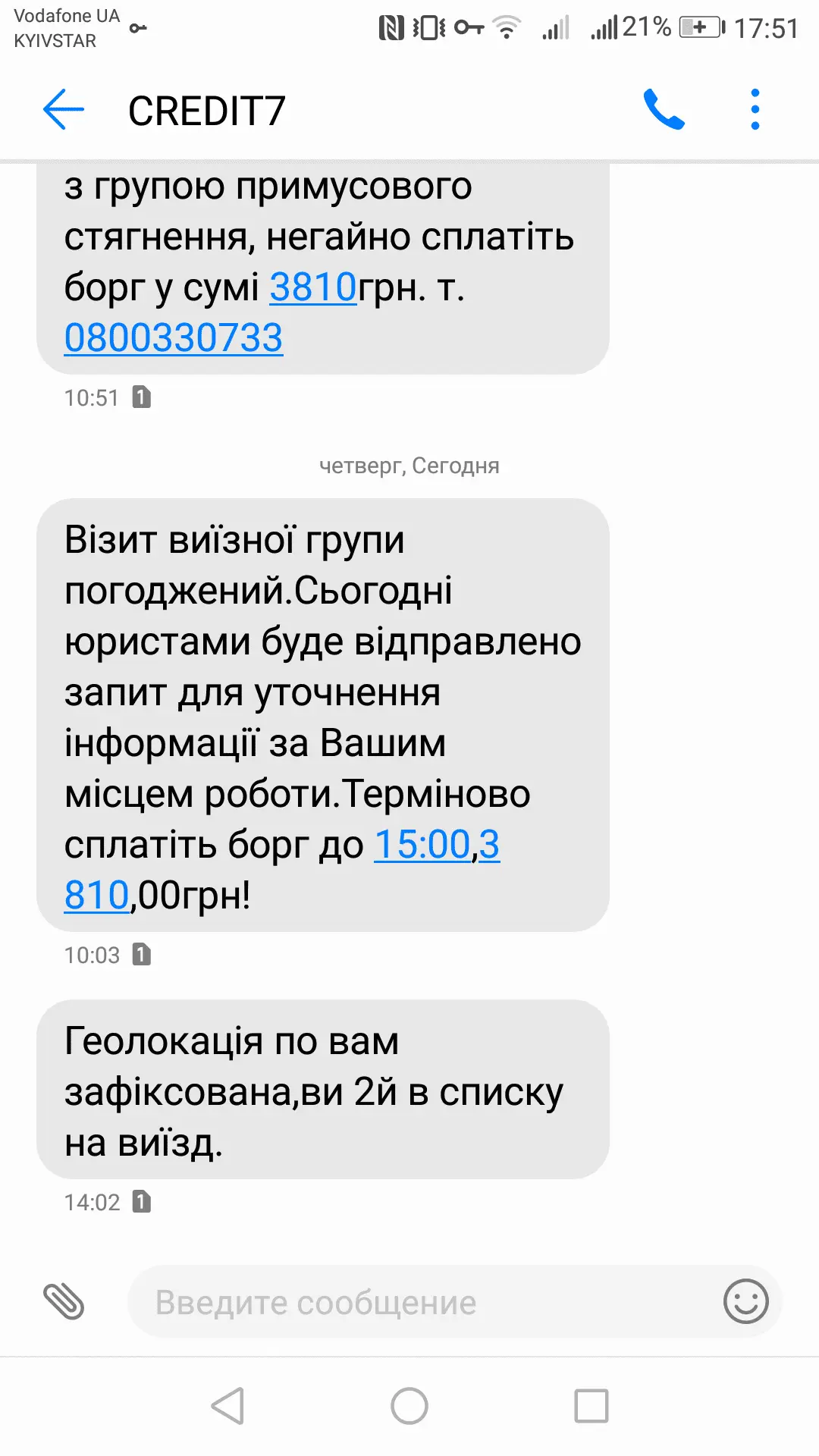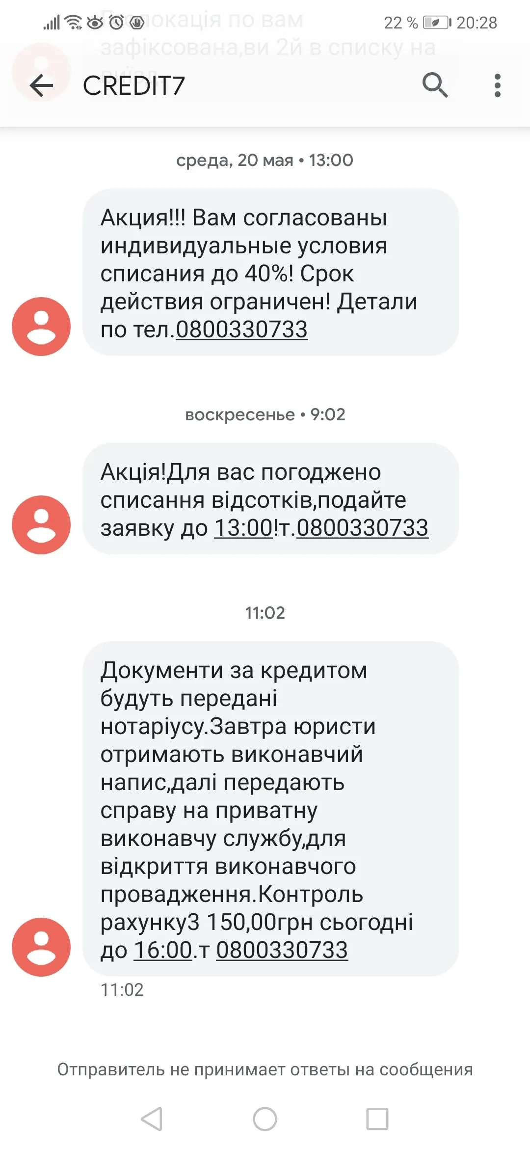 Мне сегодня сообщение от кредит7 пришло. Что-то стрёмно становится