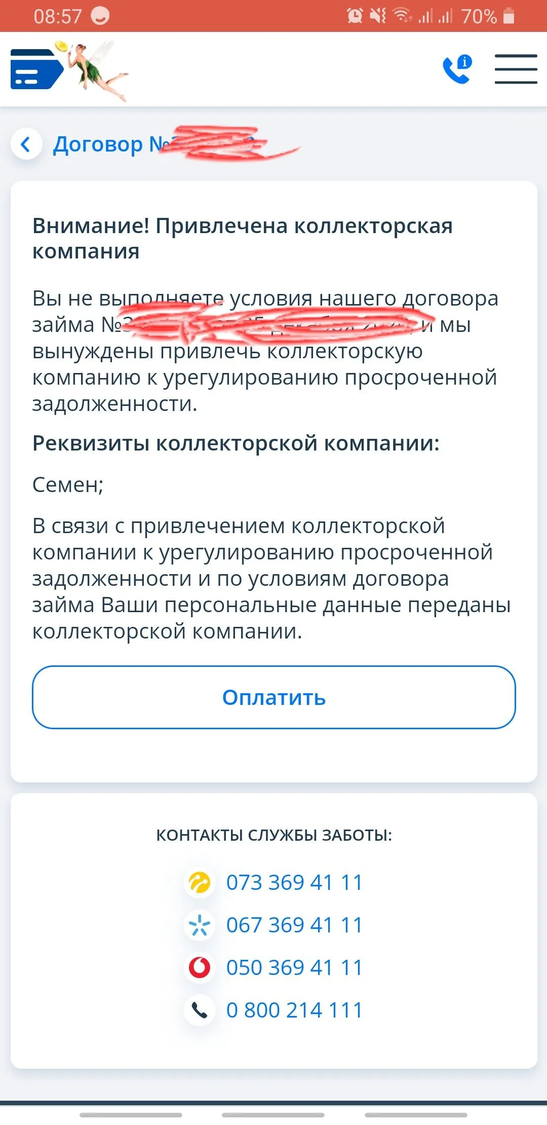 Предложили закрыть за тело. Я сказала, что согласна, но только позже. Мне грубовато ответили, что просрочка и так 167 дней. Дословно : «В такому випадку передаю на продаж вашу справу до факторингової компанії згідно ст. 1077 ЦКУ . Передаю справу на тендер та фіксую відмову від лояльного закриття боргу.»