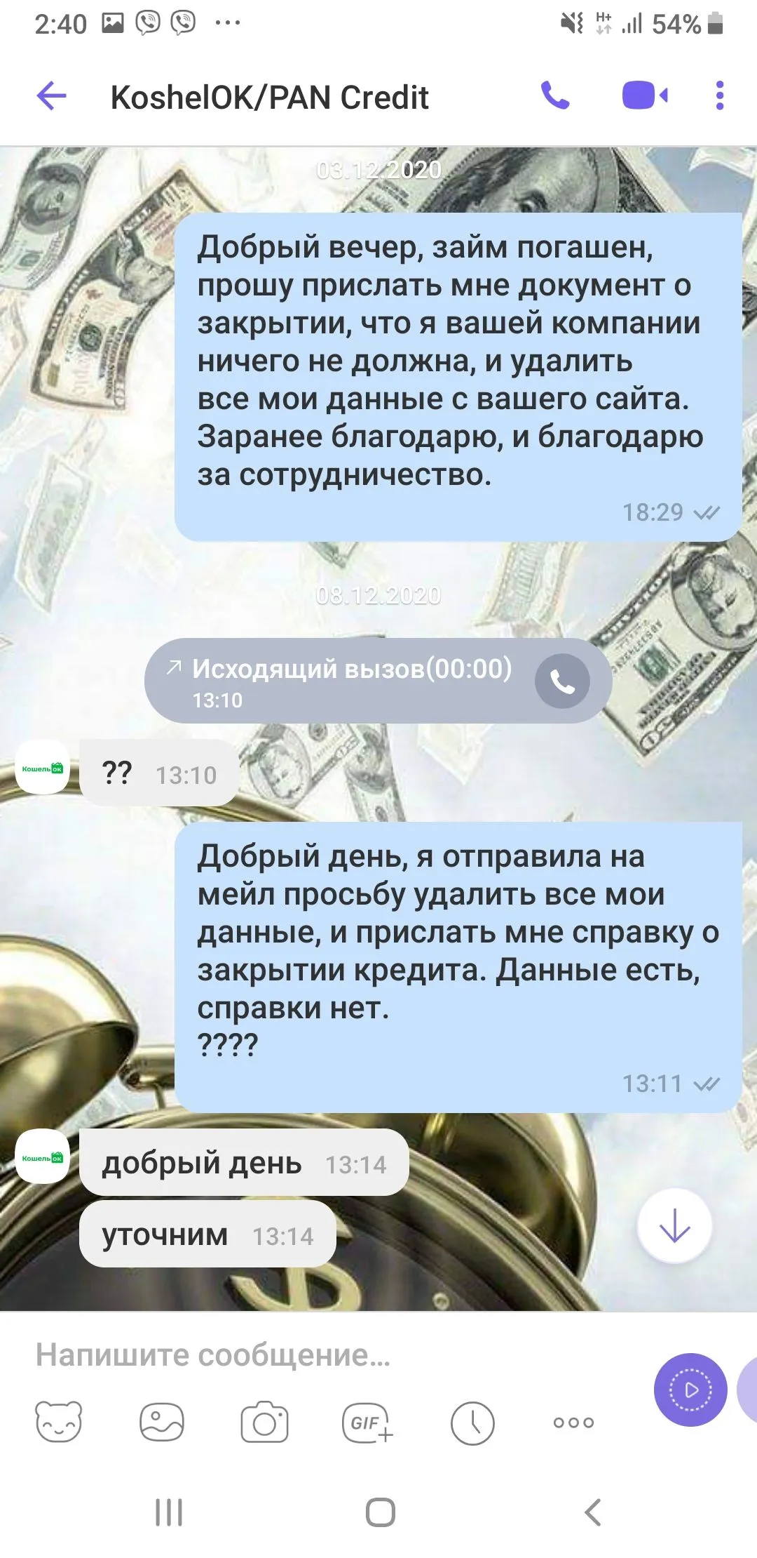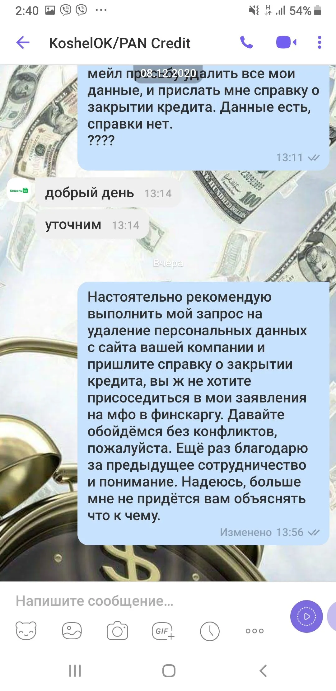 В начале вроде ничего плохого этот человек не писал,и я думала что может скажет что проценты остановили и так далее, но оказалось нет...