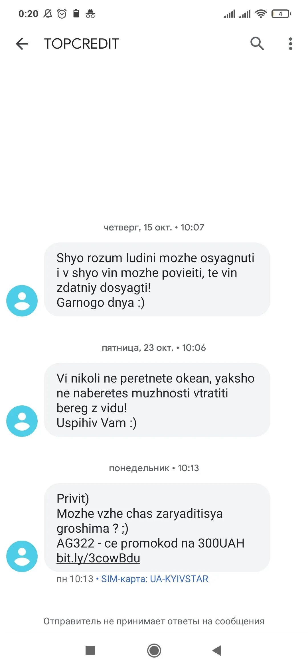 "Останній ШАНС.Тільки сьогодні,для Вас, є унікальна пропозиція, по списанню %,кількість обмежено,потрібна лише Ваша згода. Кредит7"