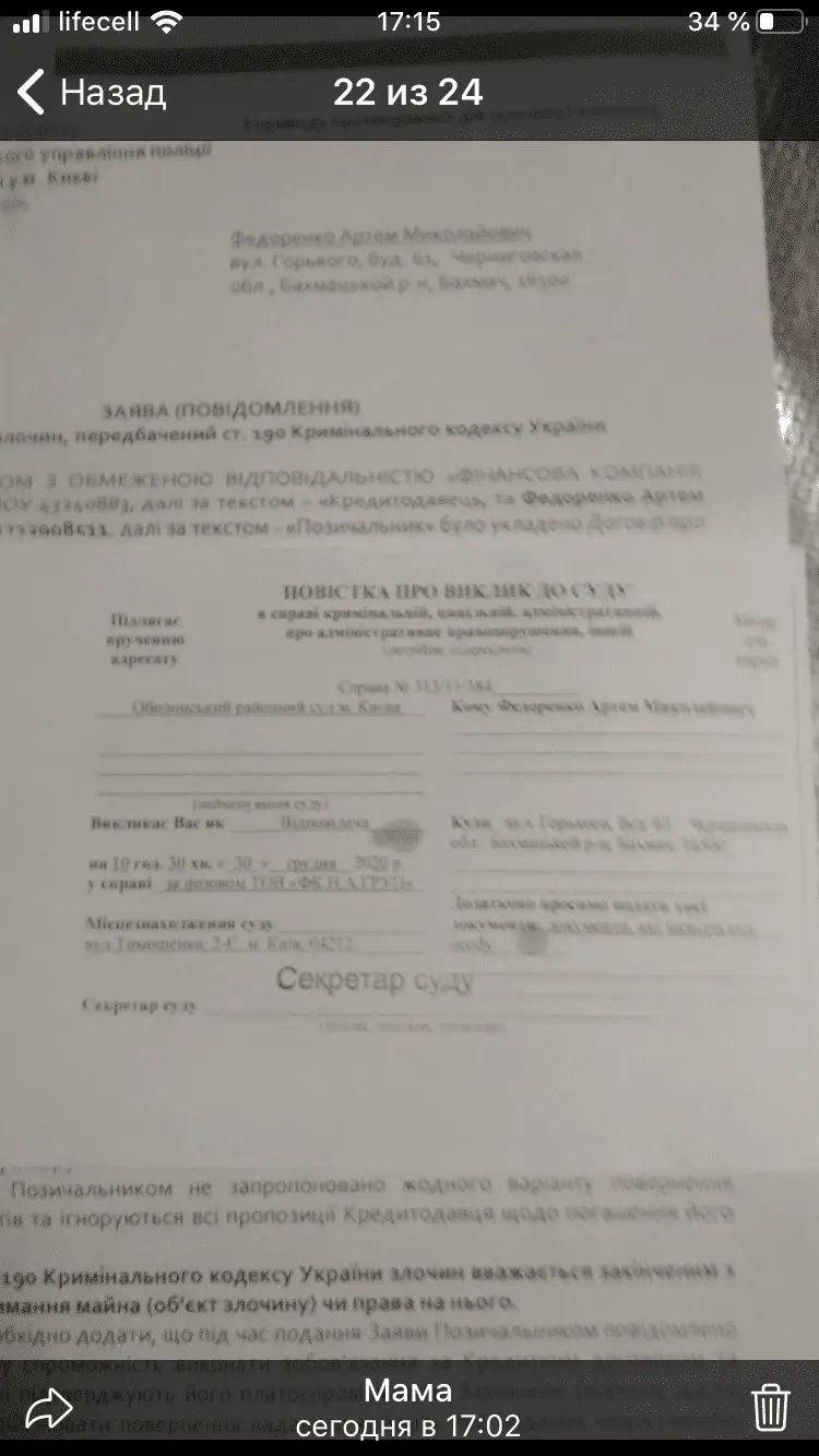 Звонить мама і каже шо пришла повєстка в суд і пісьмо , я кажу хай скіне фотку повєсткі , мені кажеться повєстка ця обична бумажка розпічата і не чого вона не значіть ... хочу спросить це реальна повєстка чі нєт ?