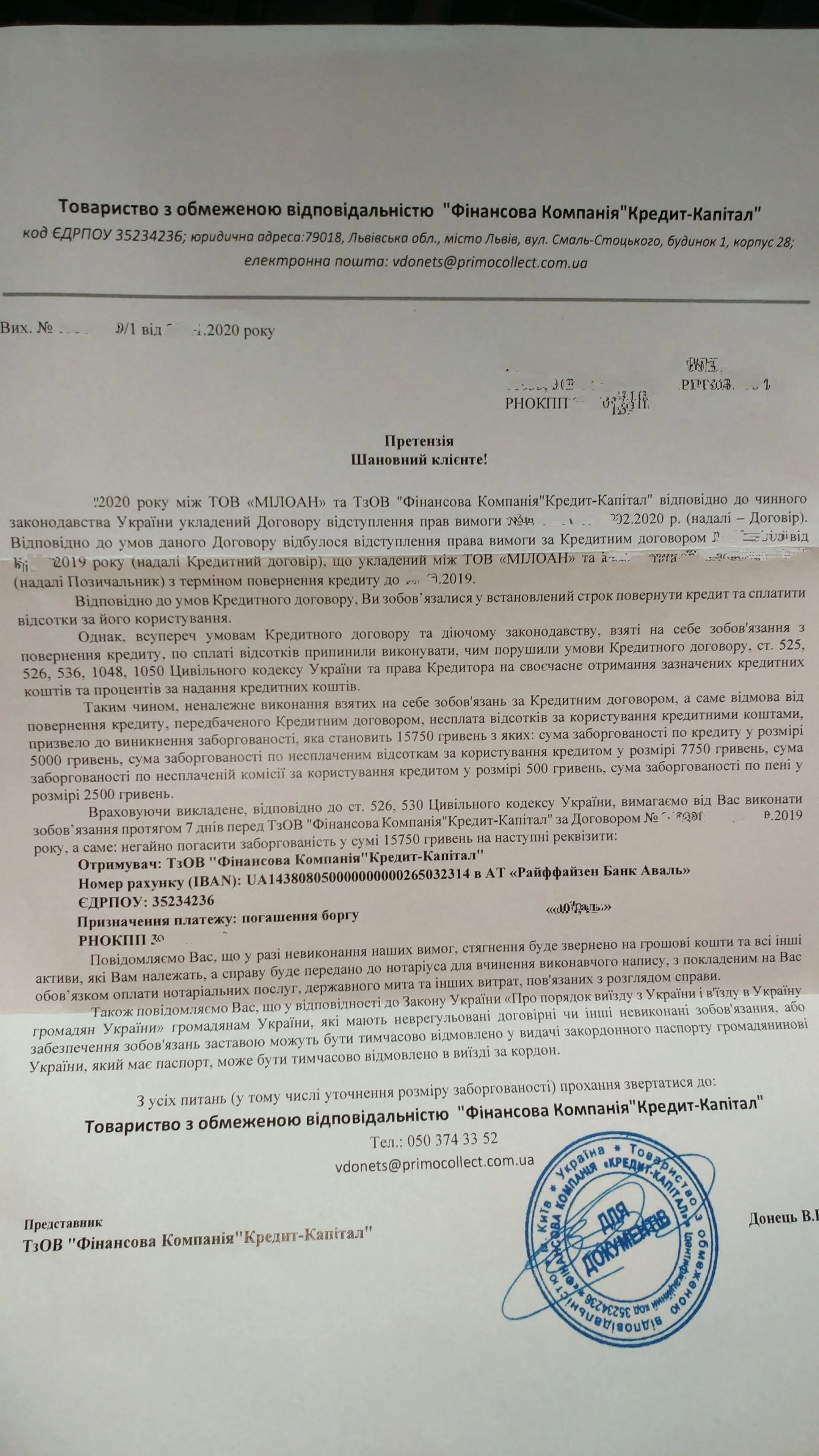 Добрый вечер, уважаемые форумчане, прислал мне кредит-капитал заказное письмо следующего содержания (см. фото). Подпись и печать на документе отсканированные (не "мокрые").