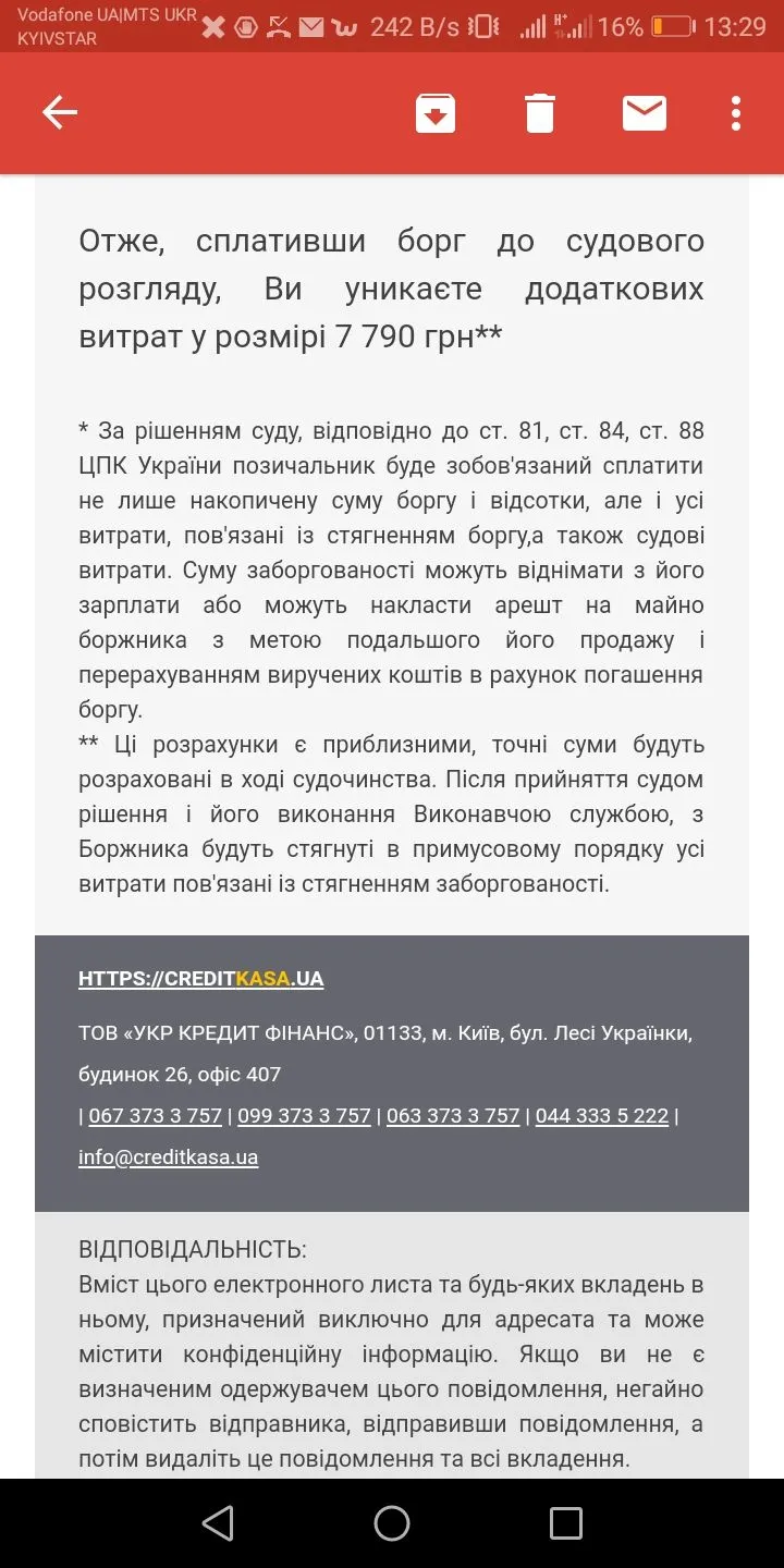 Сегодня прислали такое письмо.Правда?Или как всегда,пугалки?Тело займа 5500грн.Даже мои расходы на суд подсчитали.