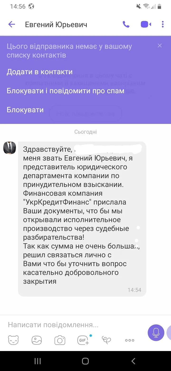 В зв'язку з несплатою Вашого боргу в сумі грн інспектори ТОВ "УКР КРЕДИТ ФІНАНС" планують візит за Вашим місцем проживання для виявлення і огляду Вашого майна з метою його подальшої можливої конфіскації виконавчими службами за відповідним рішенням суду.