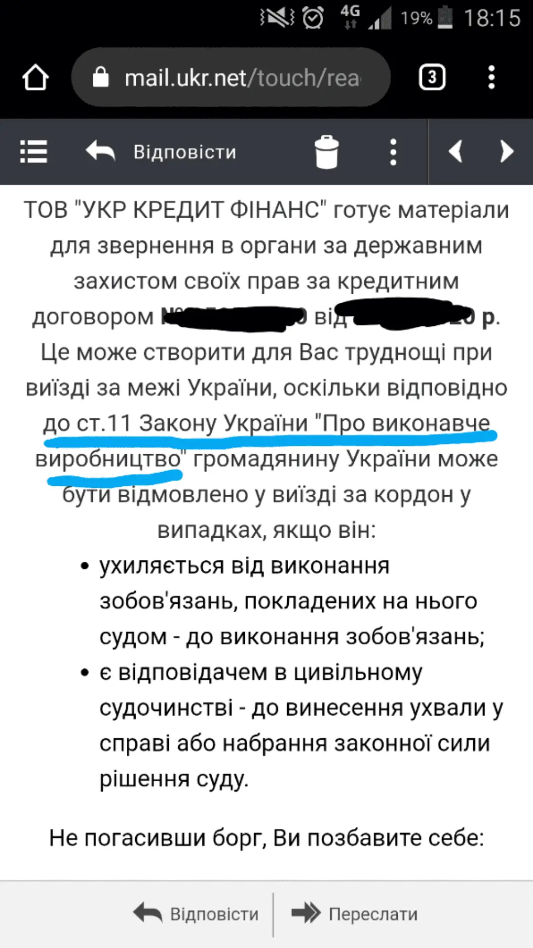Амнепришло на почту попередження, что они собираются обращаться в гос органы за защитой нарушенных прав кредитора 16 ст ЦК Украины. И подготовили заяву в суд