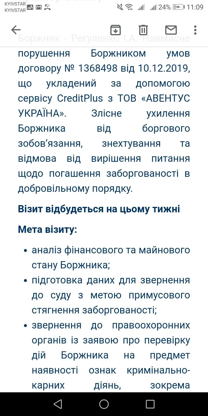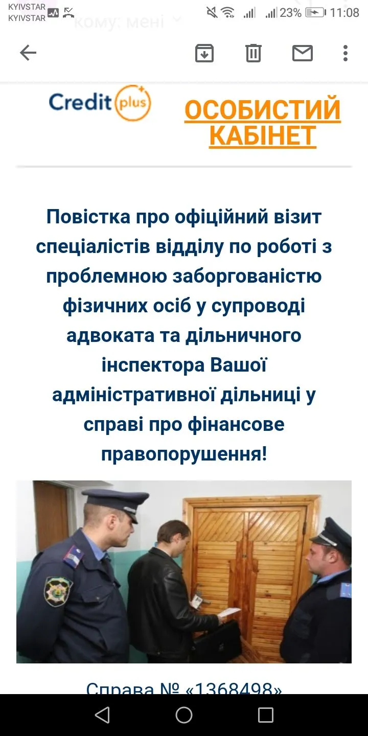 Всім привіт) маю борг в "кредит плюс" але поки, не маю чим заплатити... Тим часом, мене вже у розшук поїдають, і повістка про їх візит, прийшла на електронну пошту. Порадьте та засокойте мене. Що від цієї контори, можна очікувати?