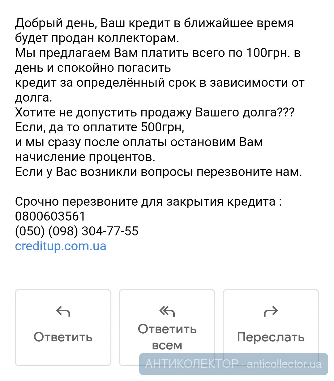 Мне тоже прислали. Плати по 100 грн. в день и т.д. Они насчитали чёрт знает сколько и ещё хотят в этот лохотрон заманить?