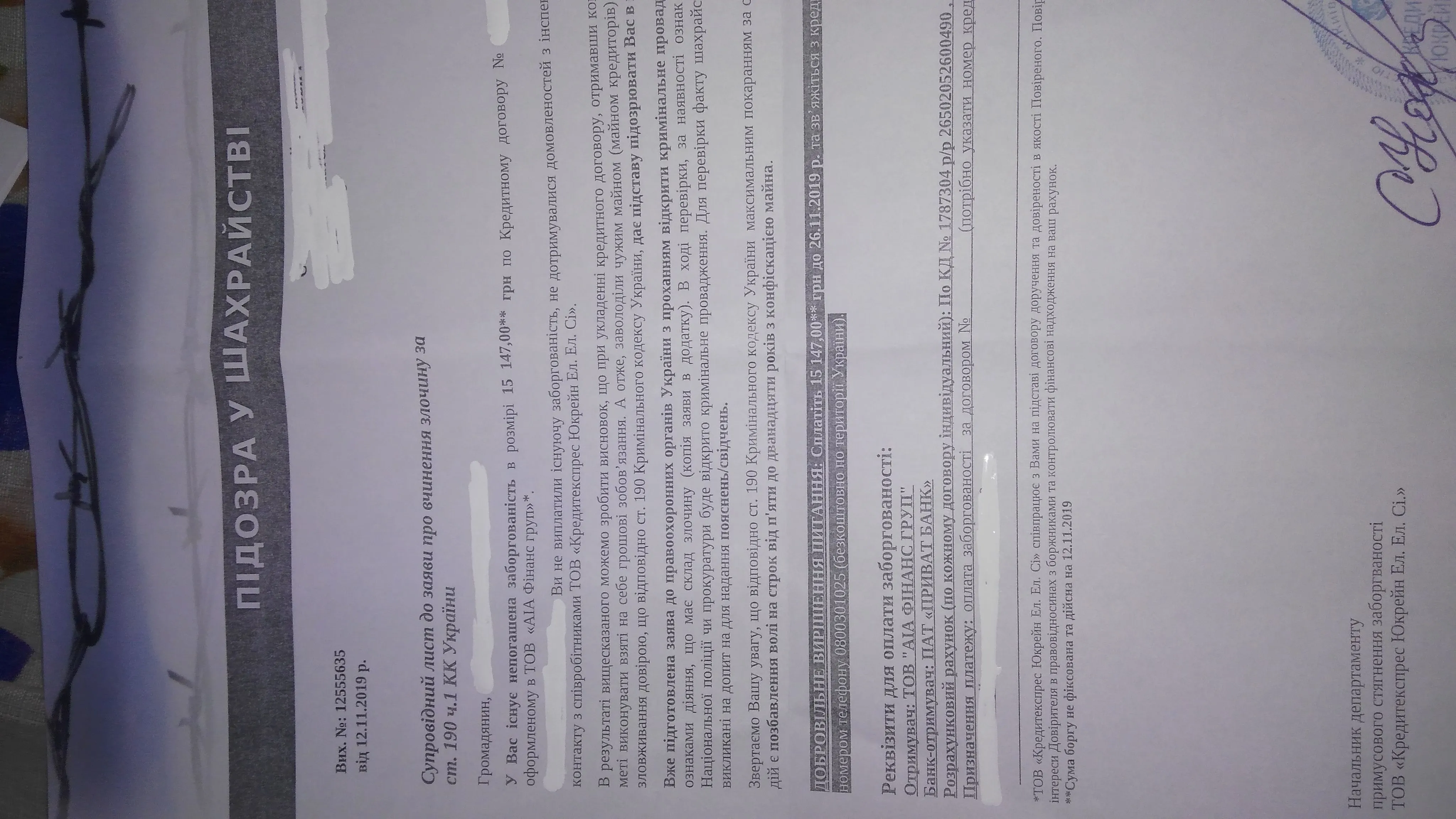 Мені якесь гімно звонило з цієї шараги сьогодні . Девочки пожалілися , що нхй послав , то вже "мужик" із юридичного відділу позвонив , сказав , що час в мене є до кінця місяця)