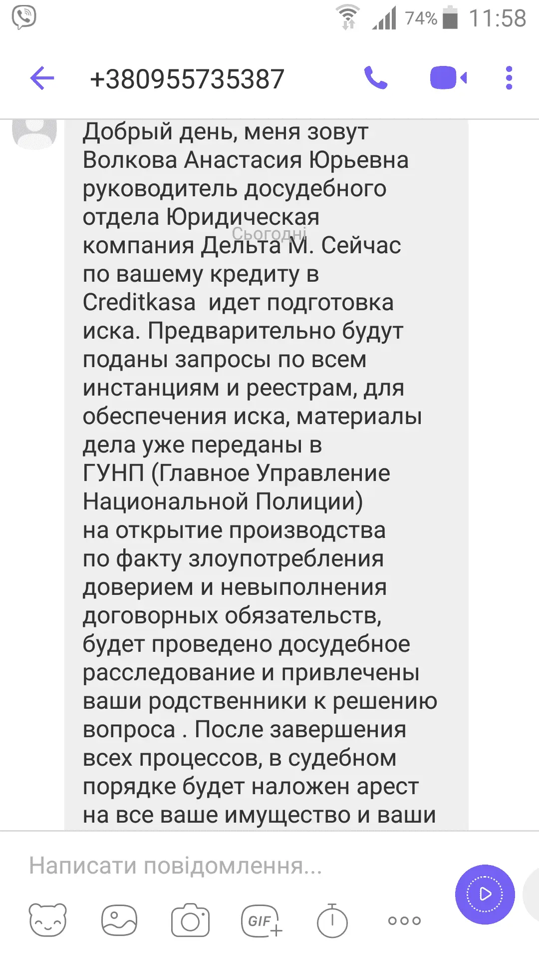 Мені сьогодні теж прийшло. Ще такого не було за півтора року. Хоча, хто на мене вже тільки в суд не подавав, а крім дзвінків час від часу, листів та повідомлень на електронку і вайбер нічого не було.