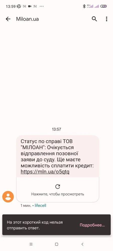 Як з ними домовитись за тіло?Нет, от слова совсем. Они и за тело закрывают. Могу вам такое же смс показать годичной давности