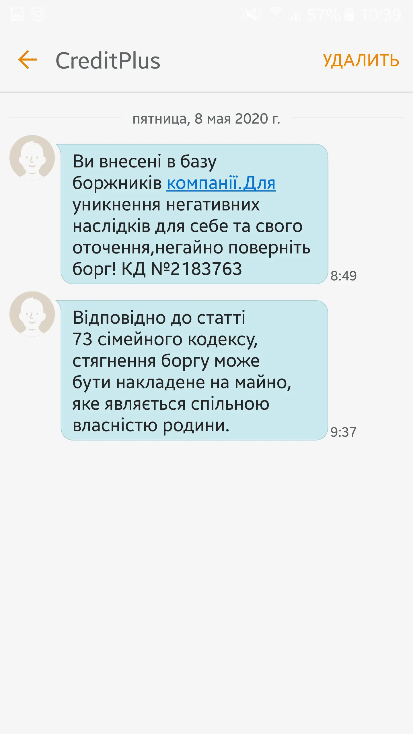 Да вижу. И мозгами понимаю, что я такая не одна и таких как я не 100 и не 200 человек... и что у всех ситуация одна а последствия разные... понимаю, что всех не посадят и не отберут у всех имущество... что некоторые забивают и живут себе дальше... понимаю что МФО это банк и возможностей у них меньше... просто наверно психологически морально тяжело... тяжело из за родных и близких которые не поймут... тяжело что пока не поймешь как выйти из этой ситуации не имея пока ни копейки... страх что будет дальше... вам Nelli06 спасибо за ответы, правду и поддержку... буду стараться успокоится и принять ситуацию. Вот сейчас поприсылали угрожающих смс опять хрен что полещло в голову