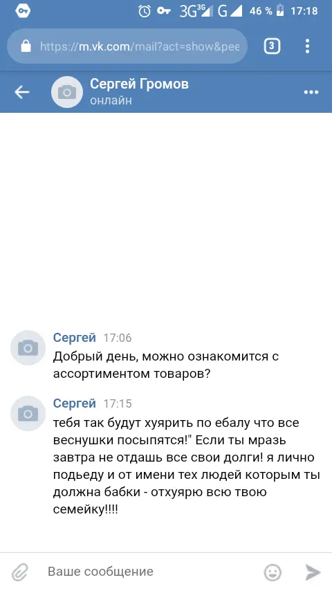 Мне вчера на вайбер писал за сос кредит. Но вроде без матов. Просрочка больше месяца. Но без матов. Видимо пока что. Номер 0631428841 Андрей Громов