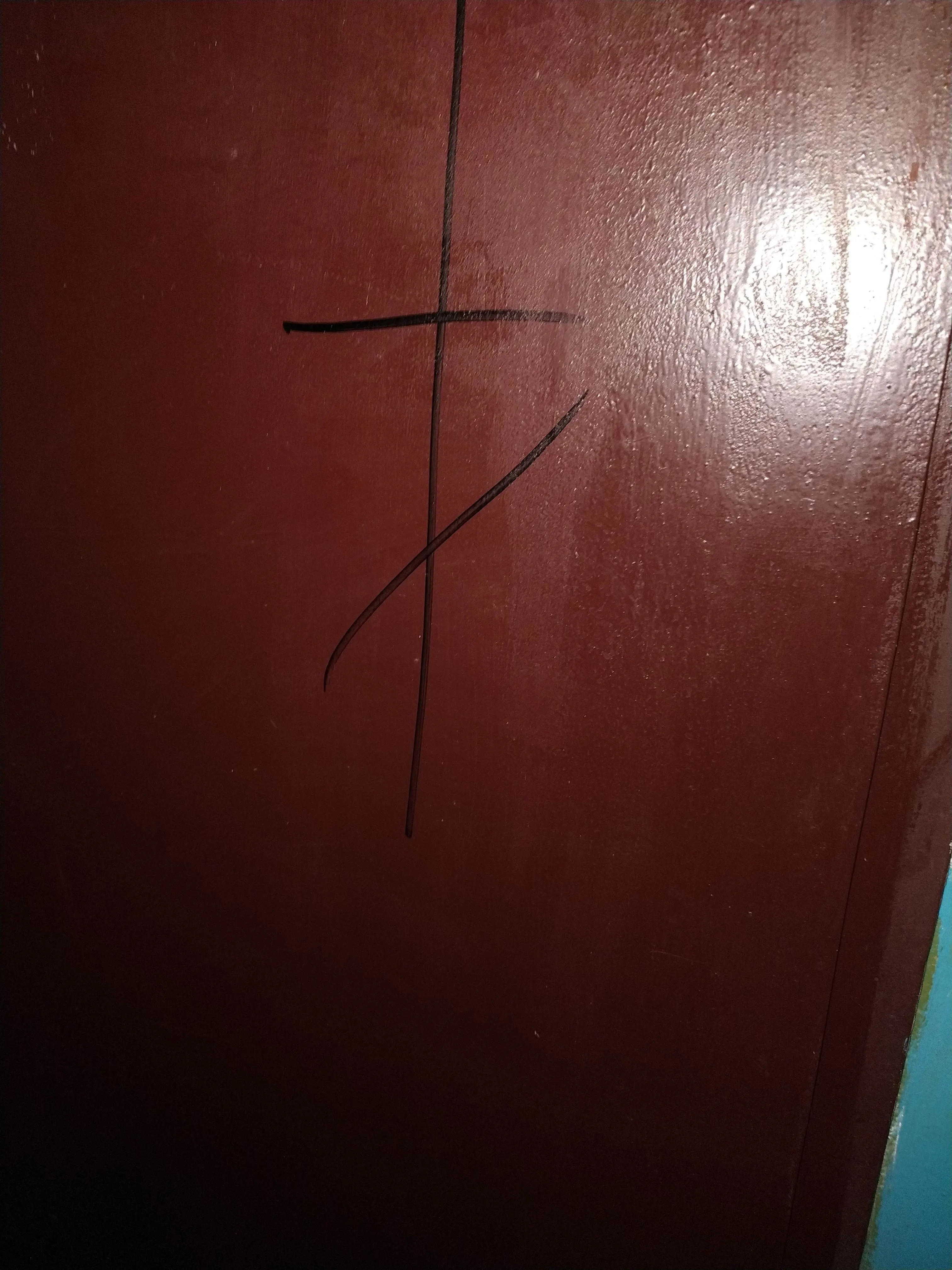 Пришла домой, а на почтовом ящике и на входной двери квартиры нарисован черным маркером похоронный крест. Кто так делает? Вообще совести нет им же все воздастся в тройном размере падлы, извините за мой французкий.