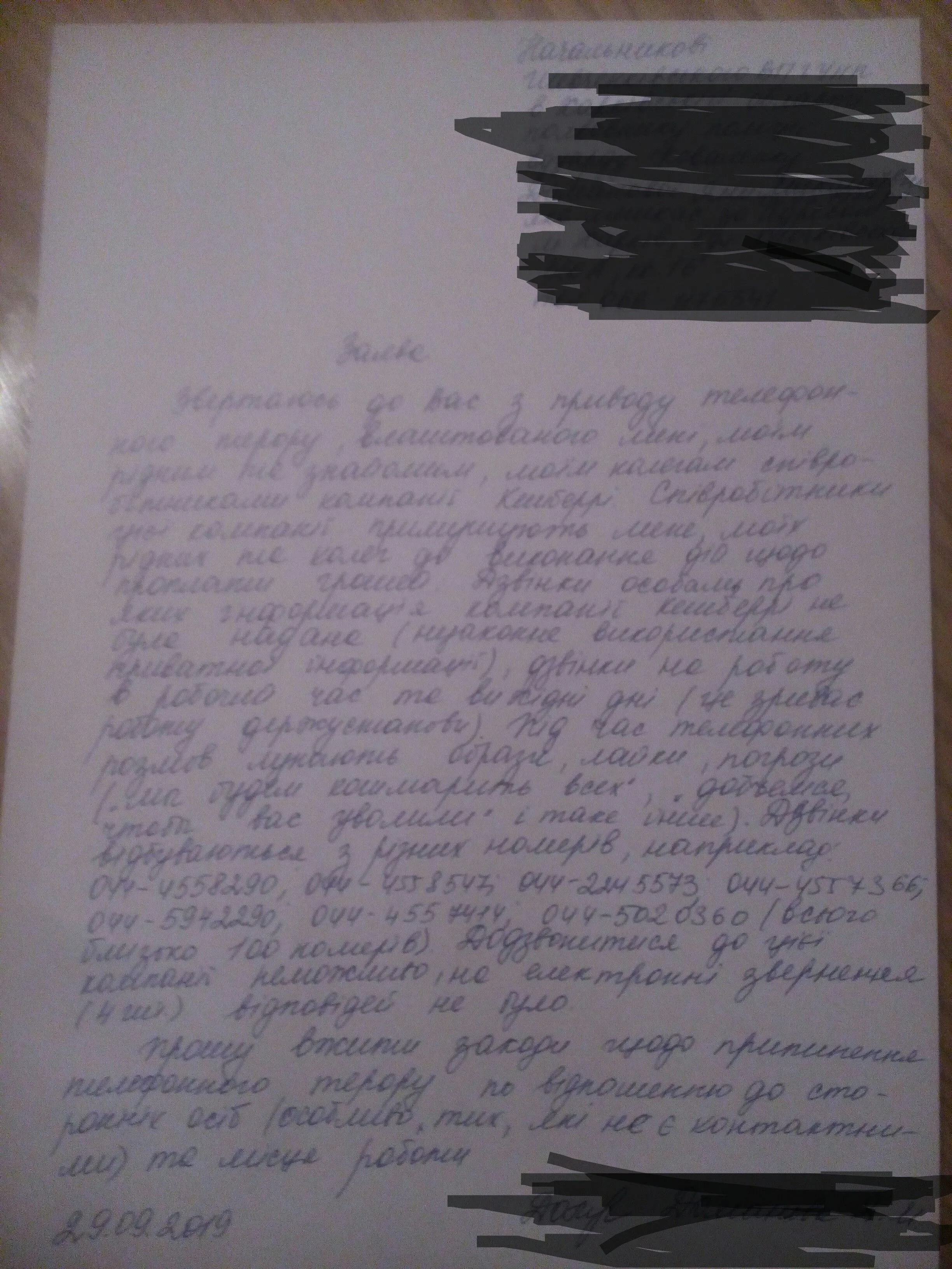 Мне помогла жалоба на урядову линию. Пока молчат. Правда я сам потом им позвонил и это сообщил)Добрый день всем! Кто-нибудь писал на Кешберри в полицию про телефонный террор? Я вот пришла. Достали всех. Если кто писал, то какие результаты?