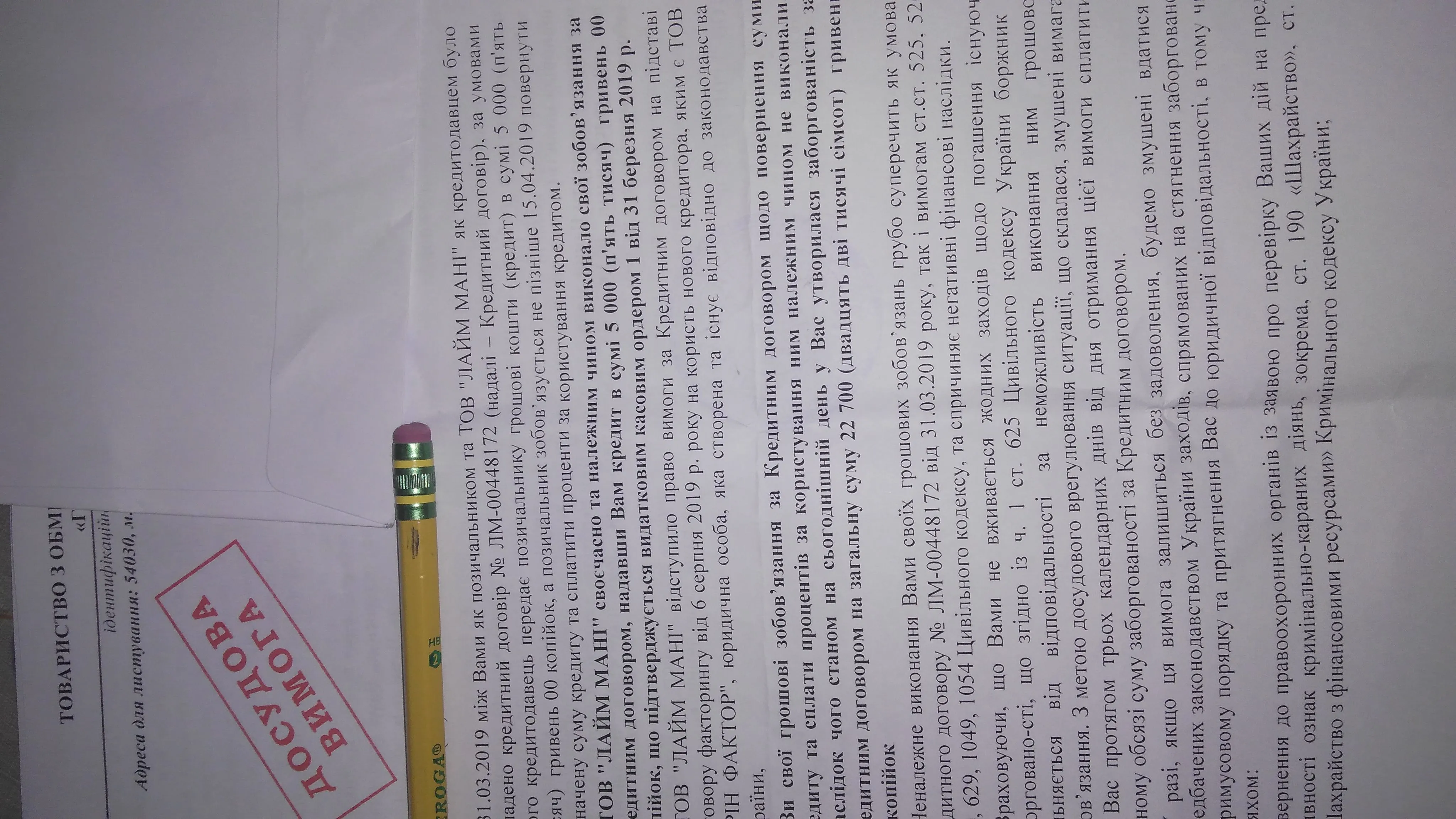 И мне пришло такое....только точнее не мне а маме с моим долгом ......но я перехватила письмо....джеймс бонд мля...вот боюсь что соседям будут слать..жизнь боль. Что то я расклеяласьПришло сегодня письмо Досудова Вимога, что кто делал после этого?