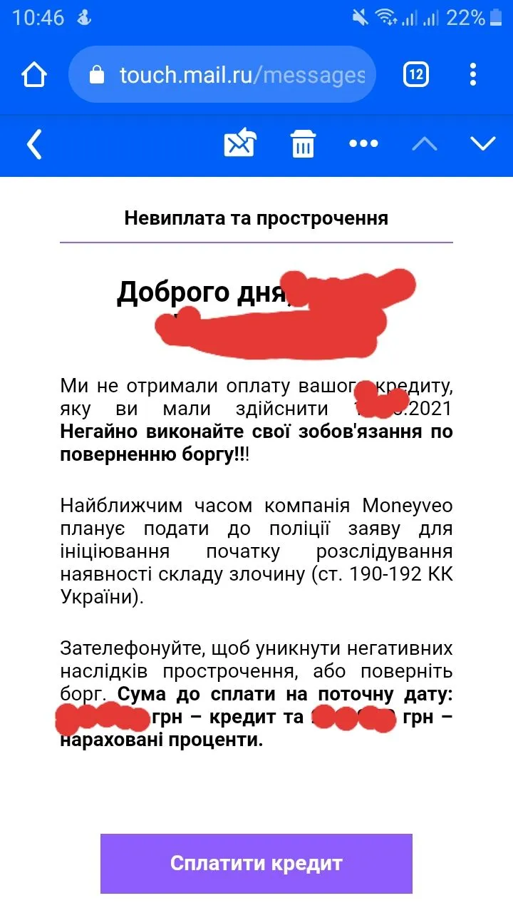 Лист від MoneyVeo
